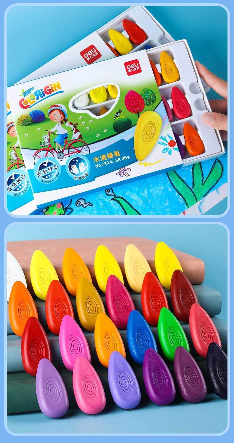 델리 물 방울 크레용 어린이 유화 스틱 세척 가능한 경화 펜 더러운 손 없음 24 색 낙서 브러시 색칠 72074스토어 가기