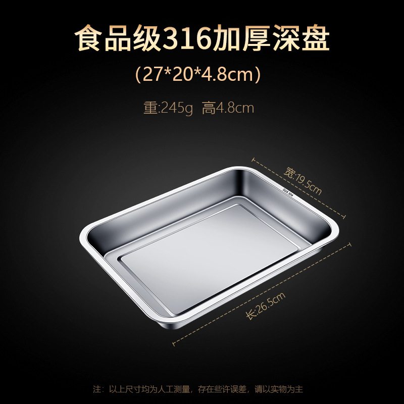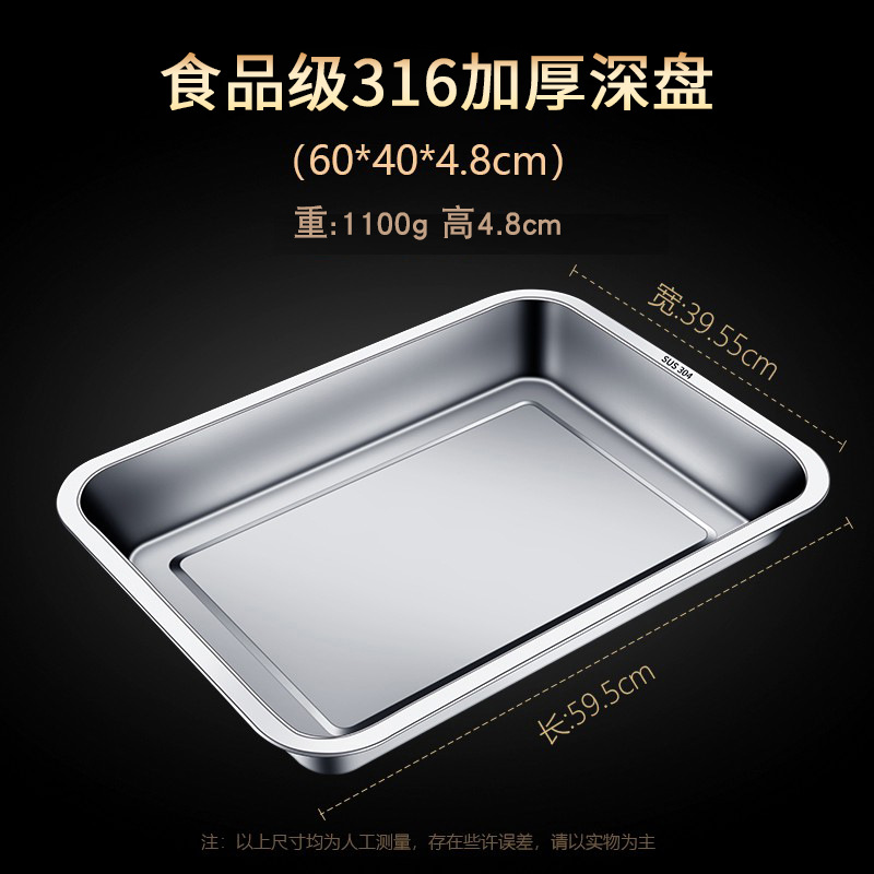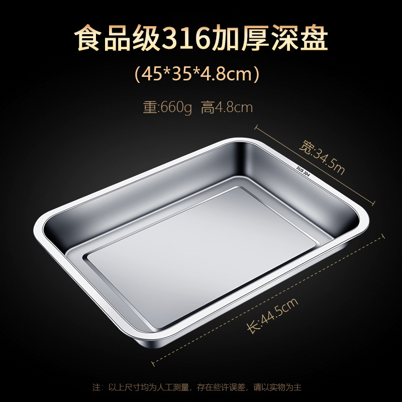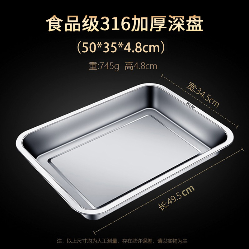 식품 등급 316 스테인레스 스틸 트레이 가정용 직사각형 두꺼운 구운 생선 접시 상업 바베큐 스퀘어 플레이트 찐 쌀 냄비스토어 가기