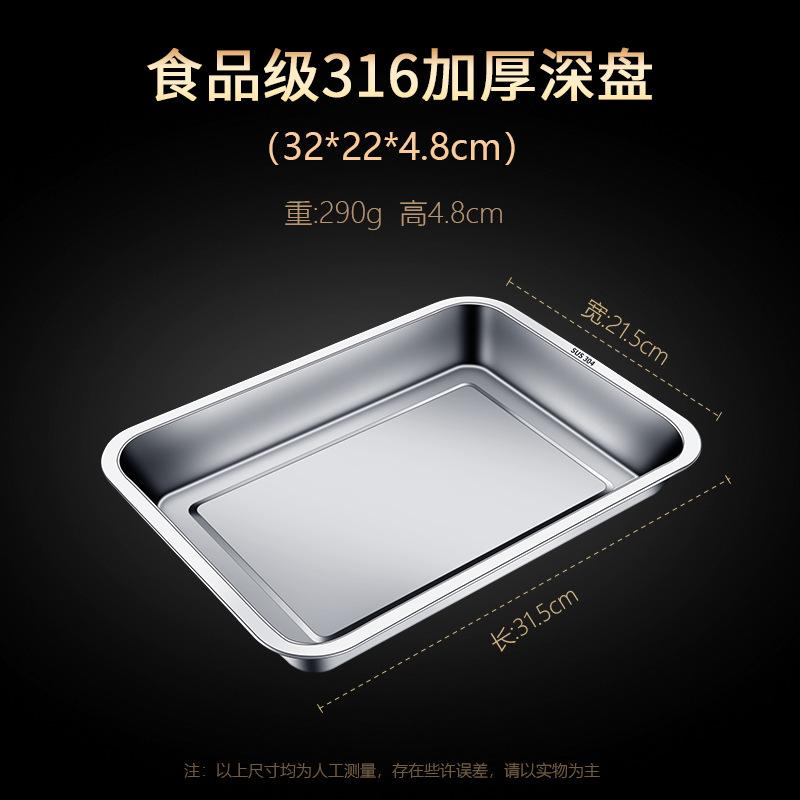 식품 등급 316 스테인레스 스틸 트레이 가정용 직사각형 두꺼운 구운 생선 접시 상업 바베큐 스퀘어 플레이트 찐 쌀 냄비