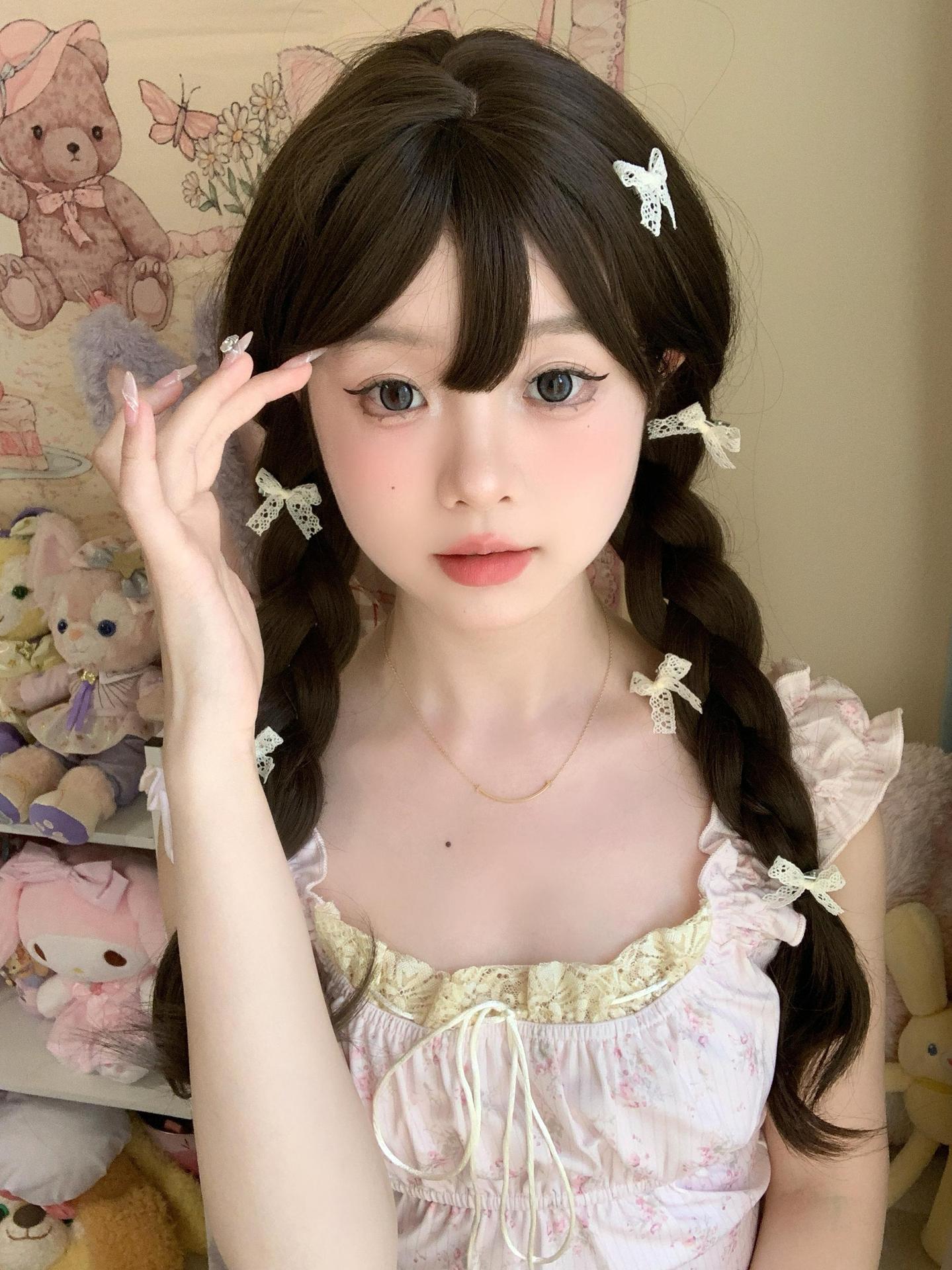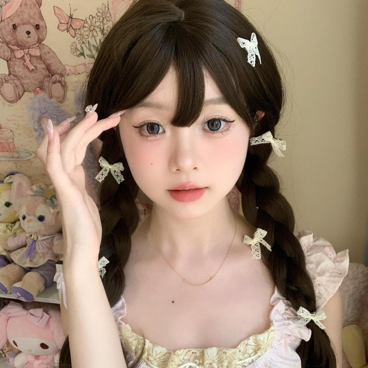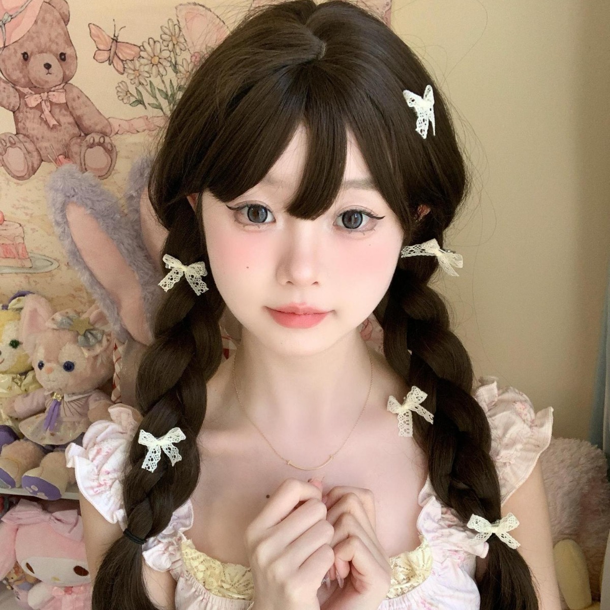 전원풍 화이트 레이스 미니 리본 헤어핀 소녀용 머리핀 사이드 클립 헤어 액세서리스토어 가기