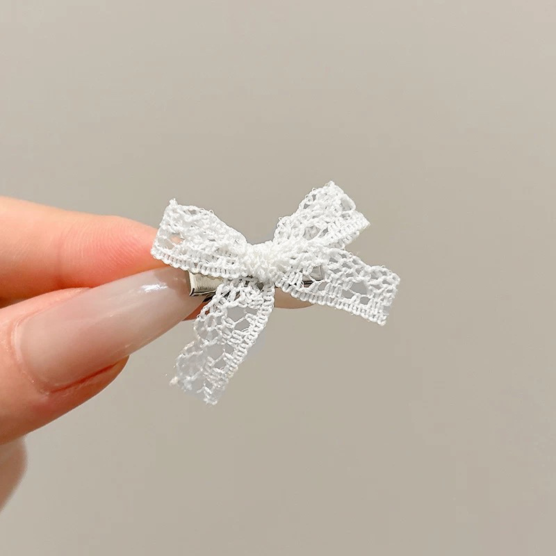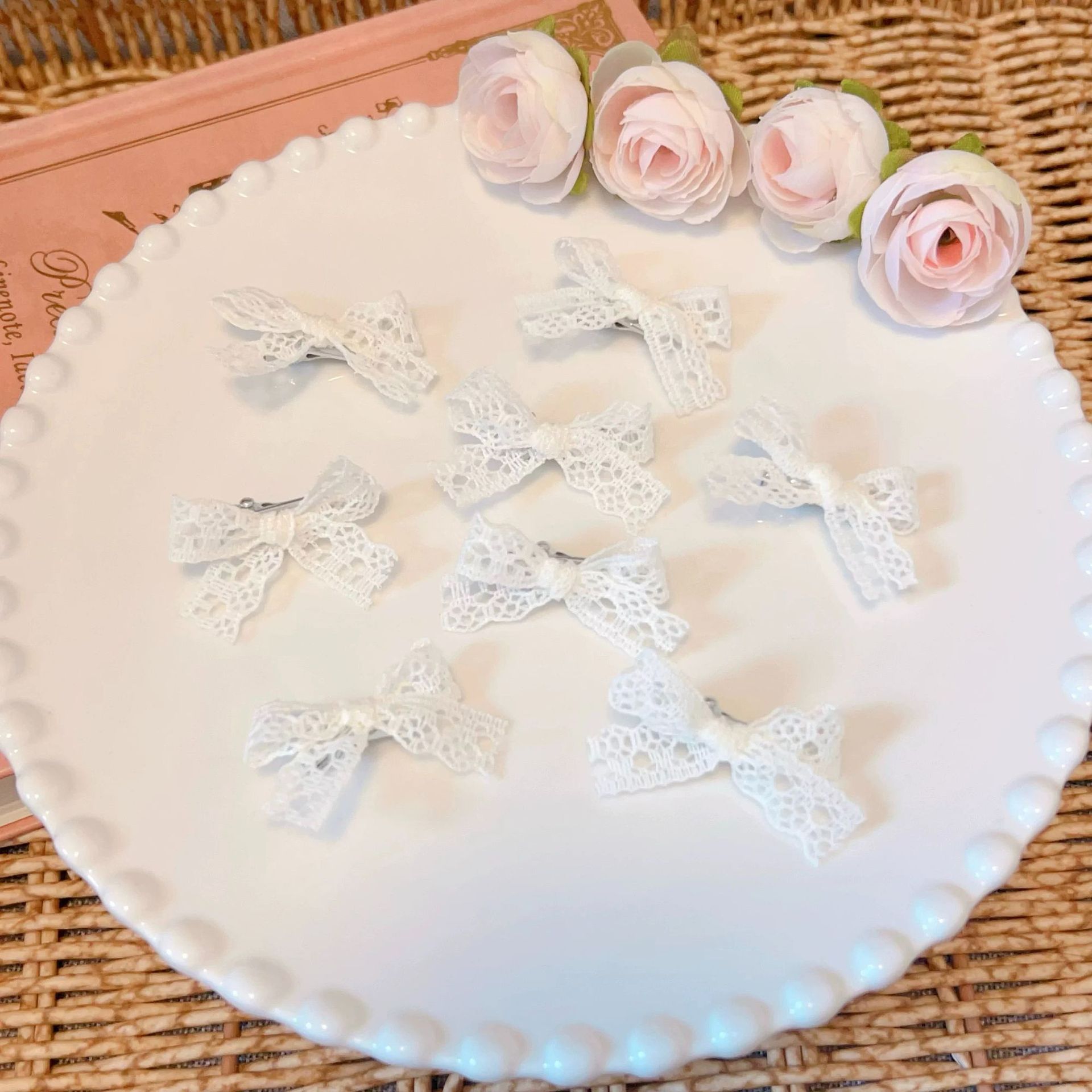 전원풍 화이트 레이스 미니 리본 헤어핀 소녀용 머리핀 사이드 클립 헤어 액세서리