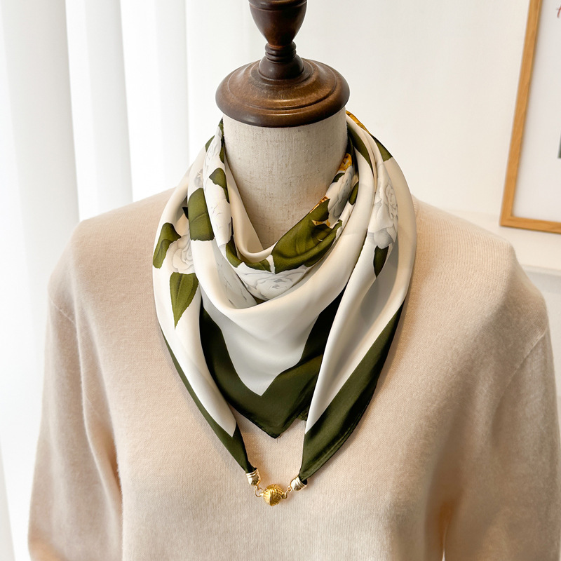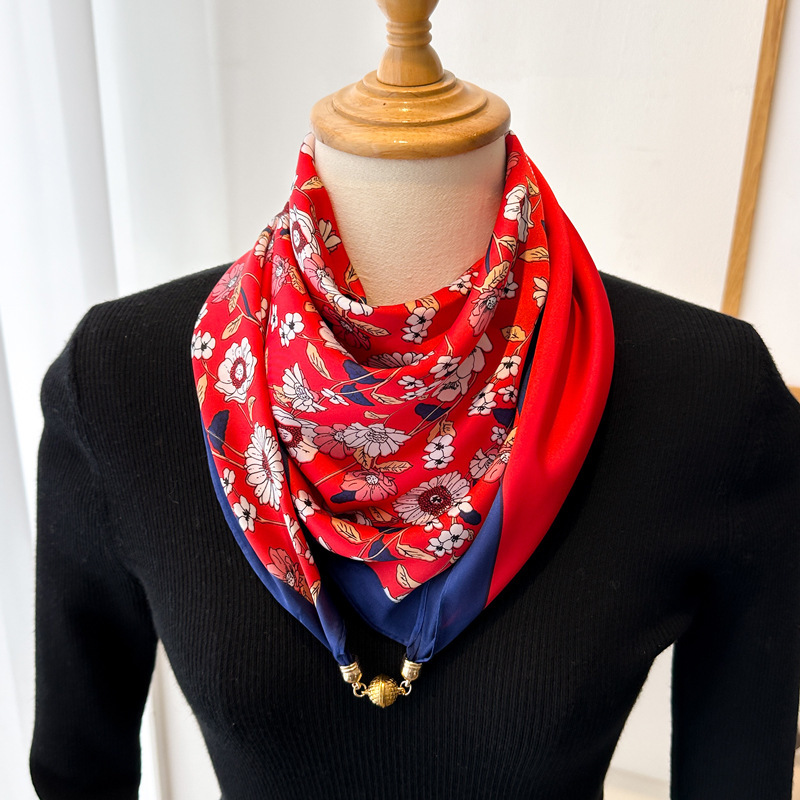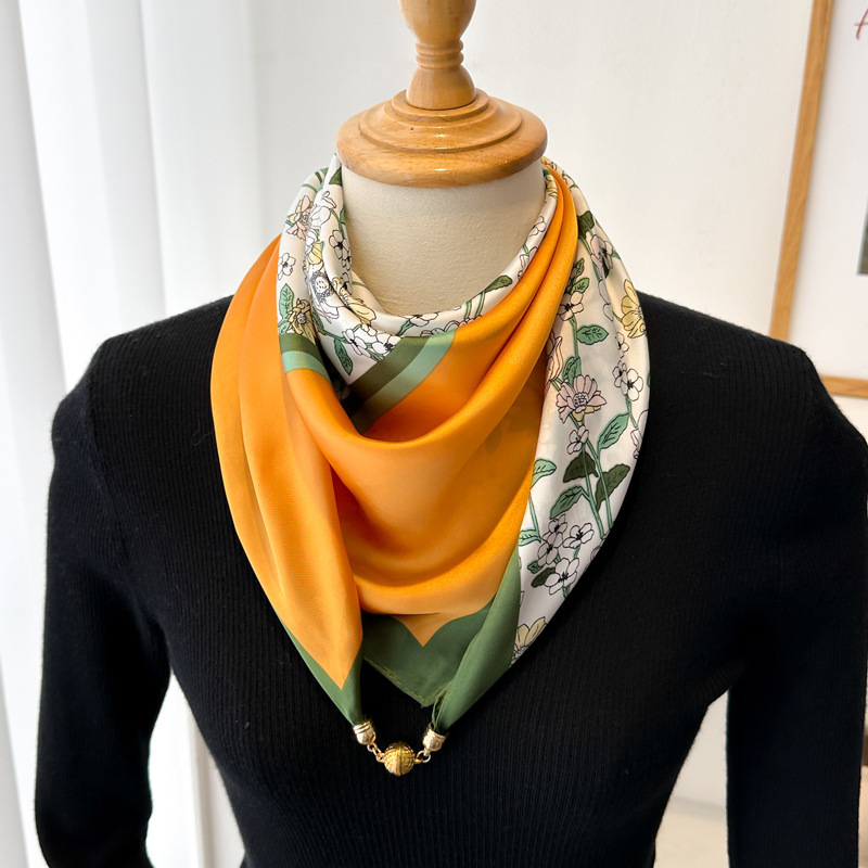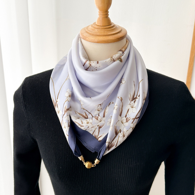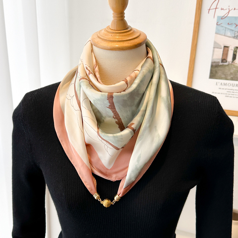 마그네틱 버클 삼각형 작은 광장 스카프 여성의 봄과 가을 여름 셔츠 목걸이 스카프 얇은 스카프 70x70스토어 가기