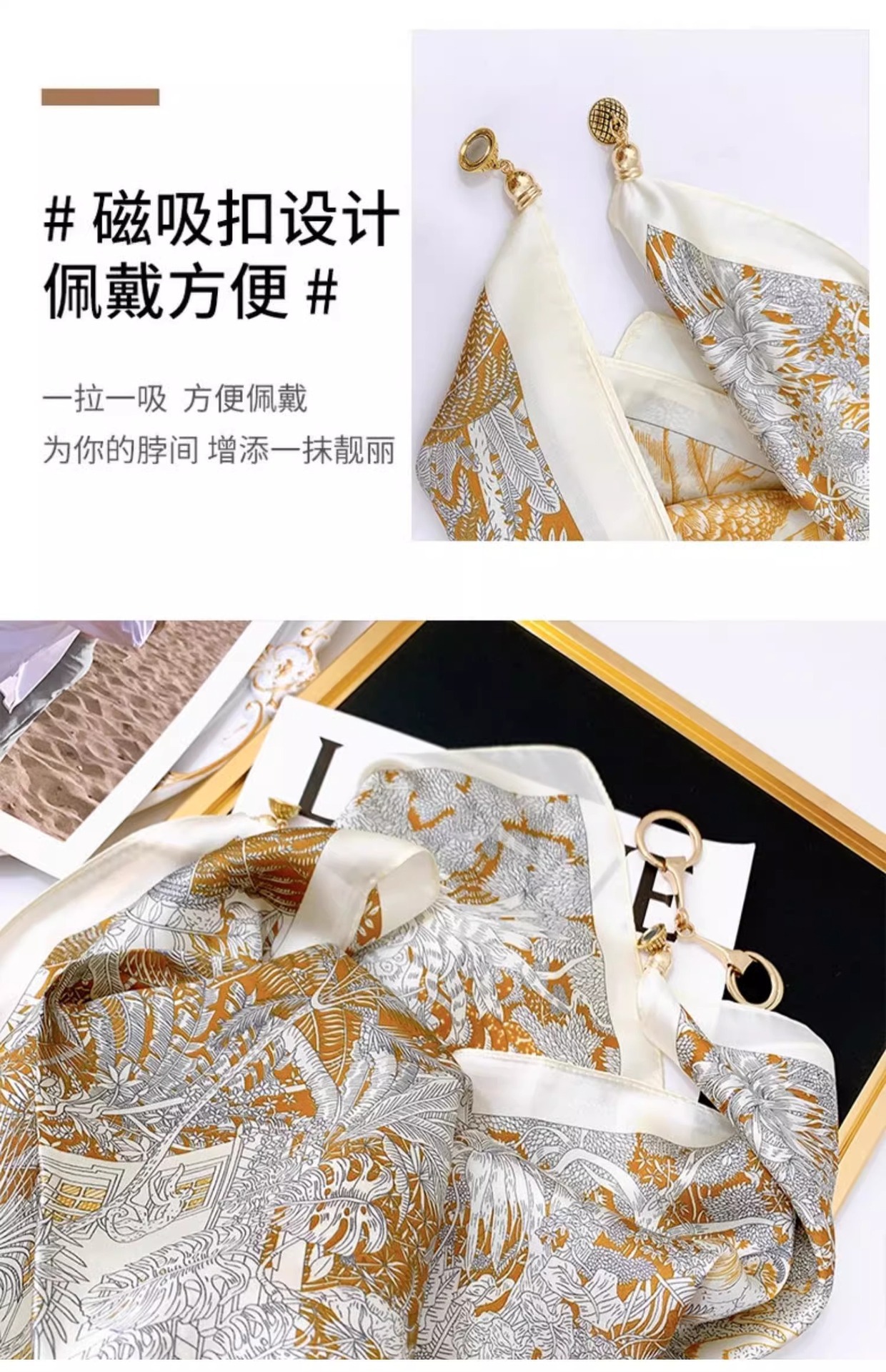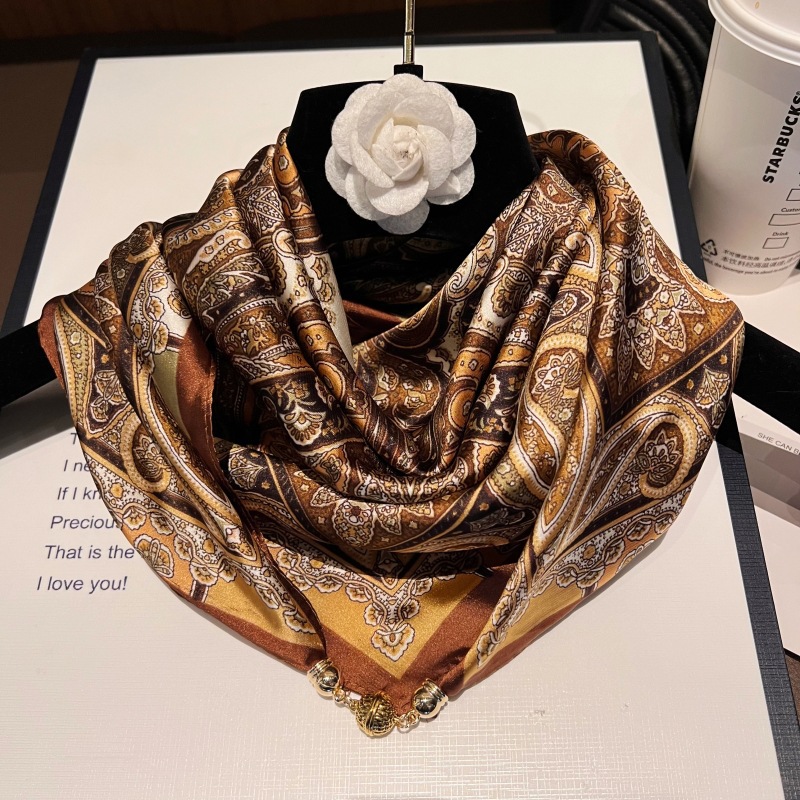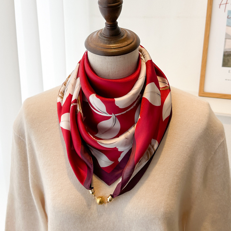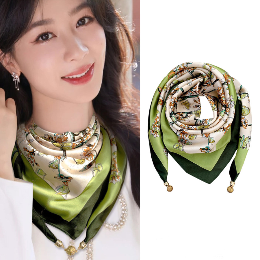 마그네틱 버클 삼각형 작은 광장 스카프 여성의 봄과 가을 여름 셔츠 목걸이 스카프 얇은 스카프 70x70스토어 가기