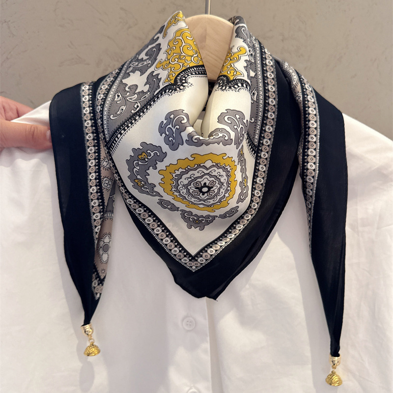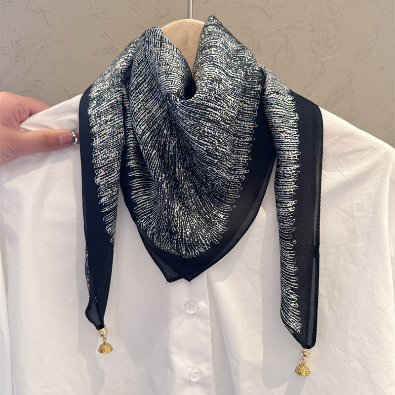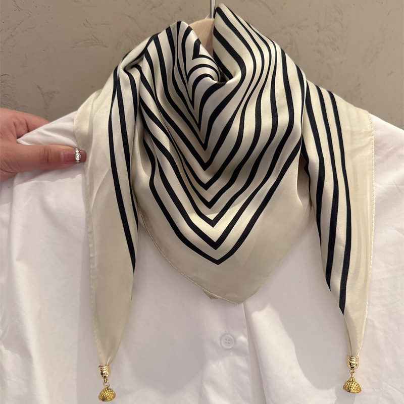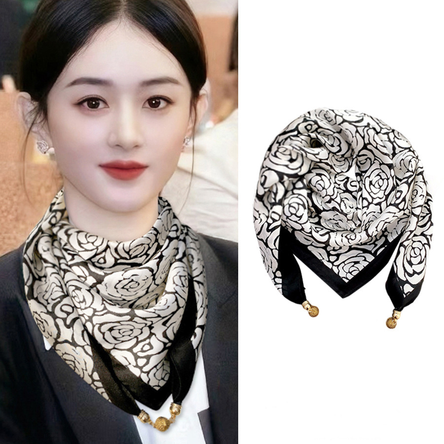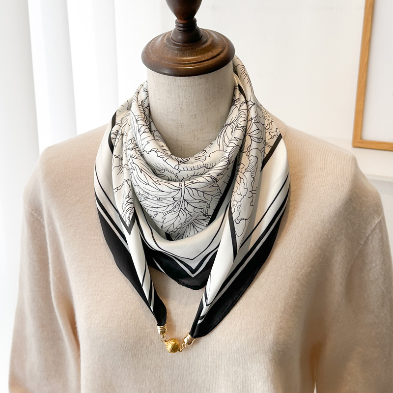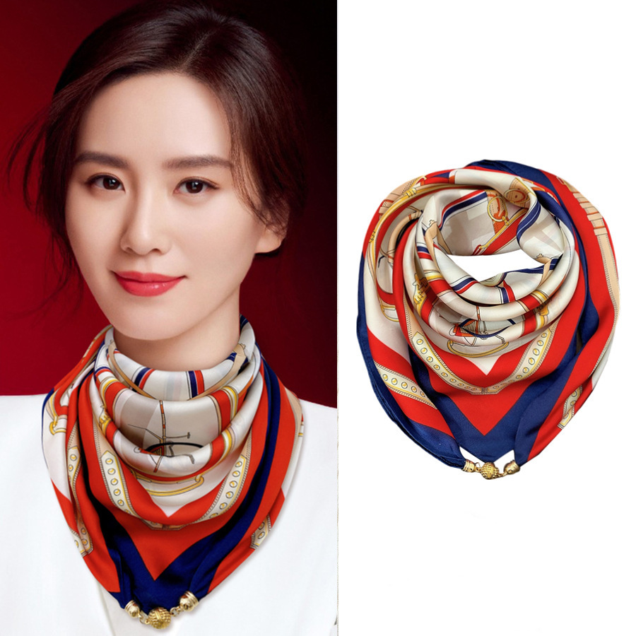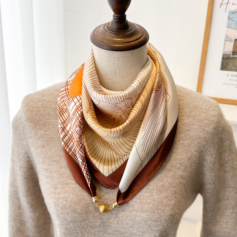 마그네틱 버클 삼각형 작은 광장 스카프 여성의 봄과 가을 여름 셔츠 목걸이 스카프 얇은 스카프 70x70