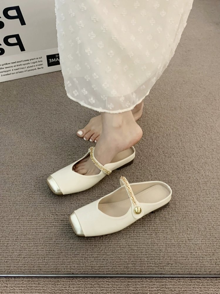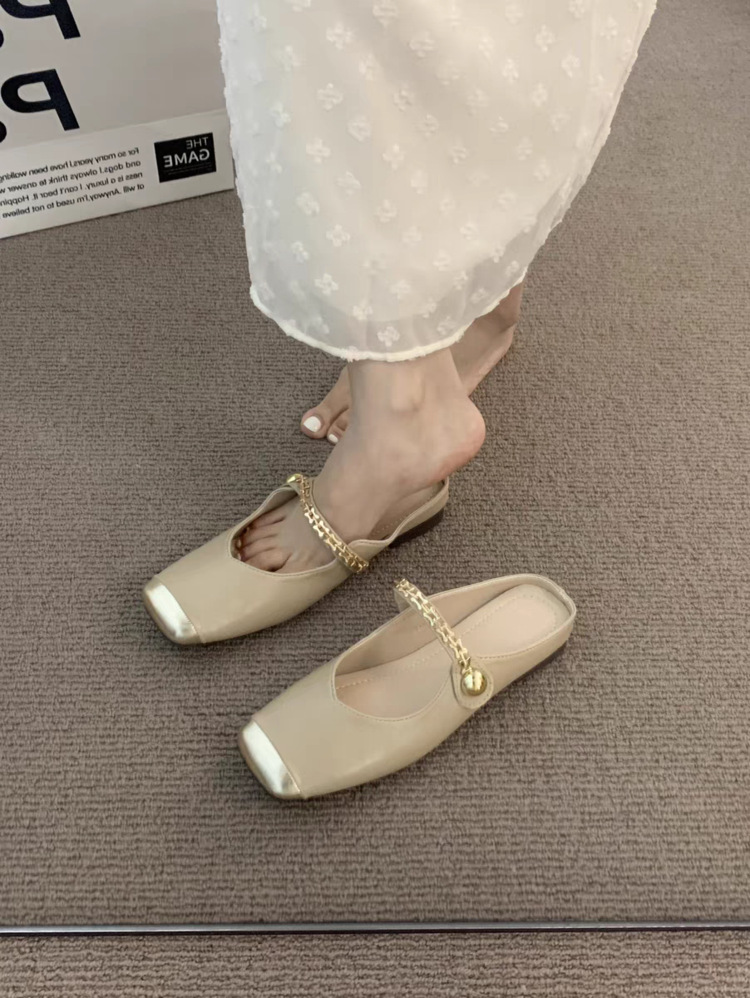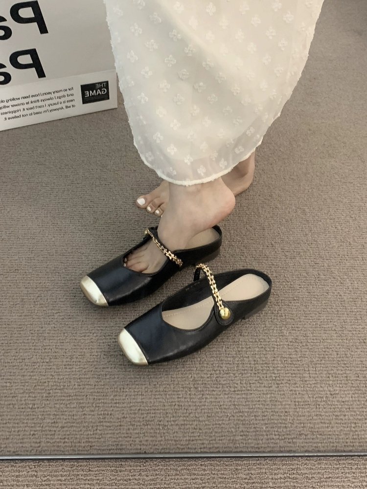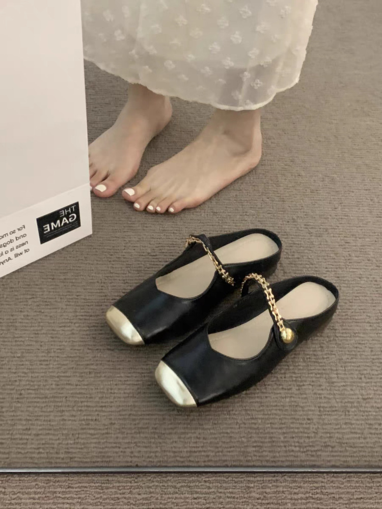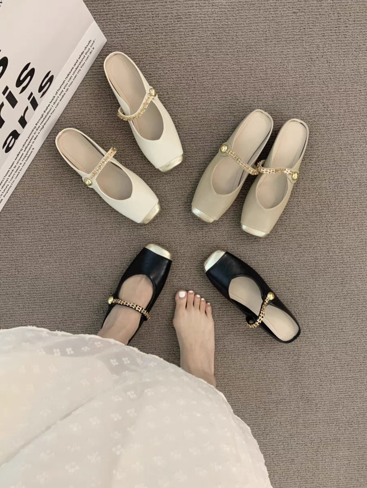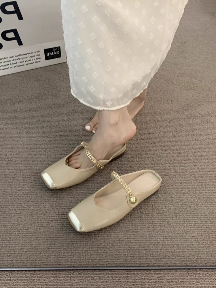 프랑스 스타일 부드러운 반 슬리퍼 플랫 2024 봄과 여름 요정 체인 기질 메리 제인 신발 부드러운 저녁 신발스토어 가기