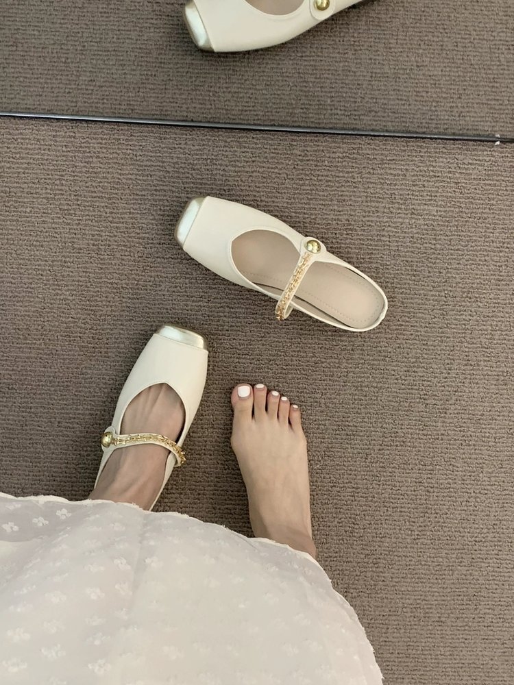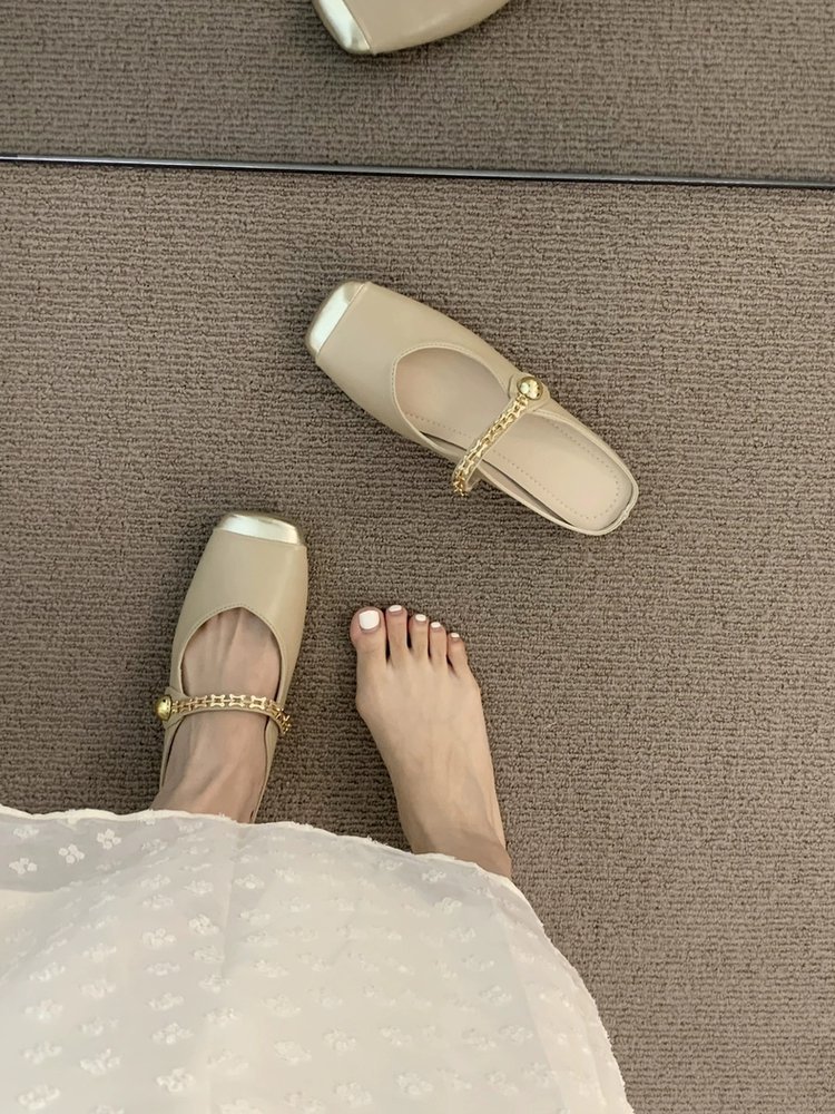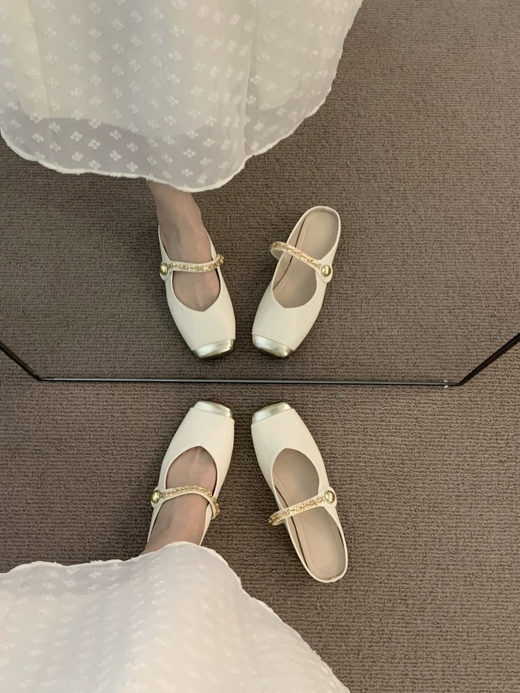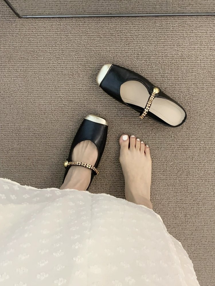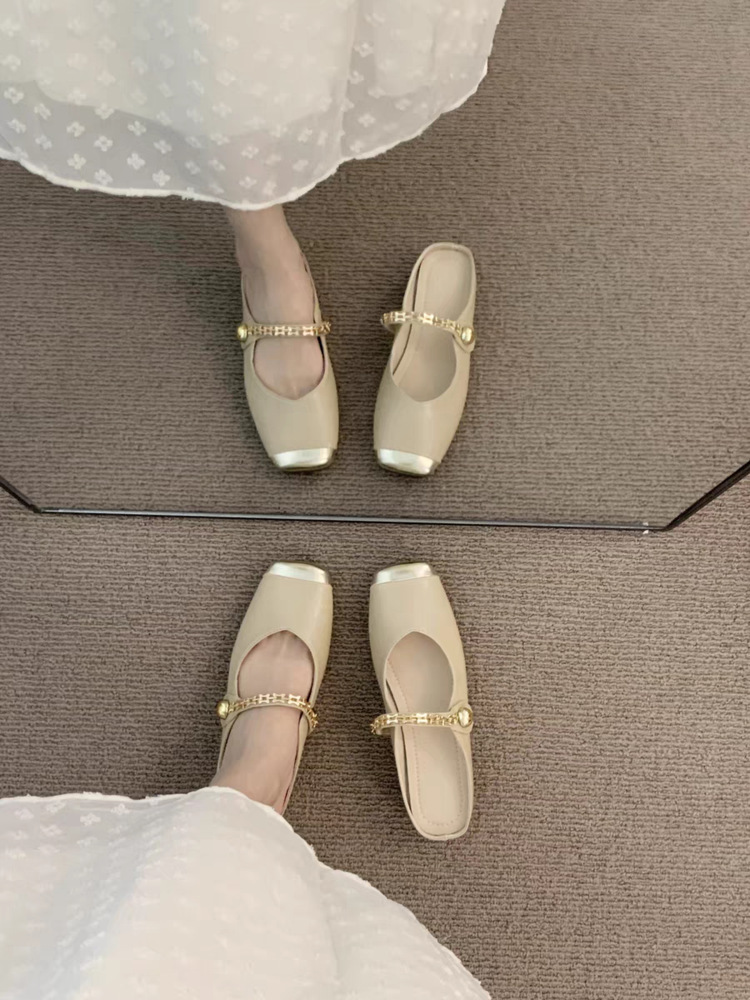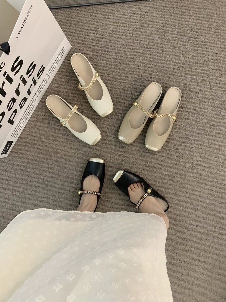 프랑스 스타일 부드러운 반 슬리퍼 플랫 2024 봄과 여름 요정 체인 기질 메리 제인 신발 부드러운 저녁 신발스토어 가기