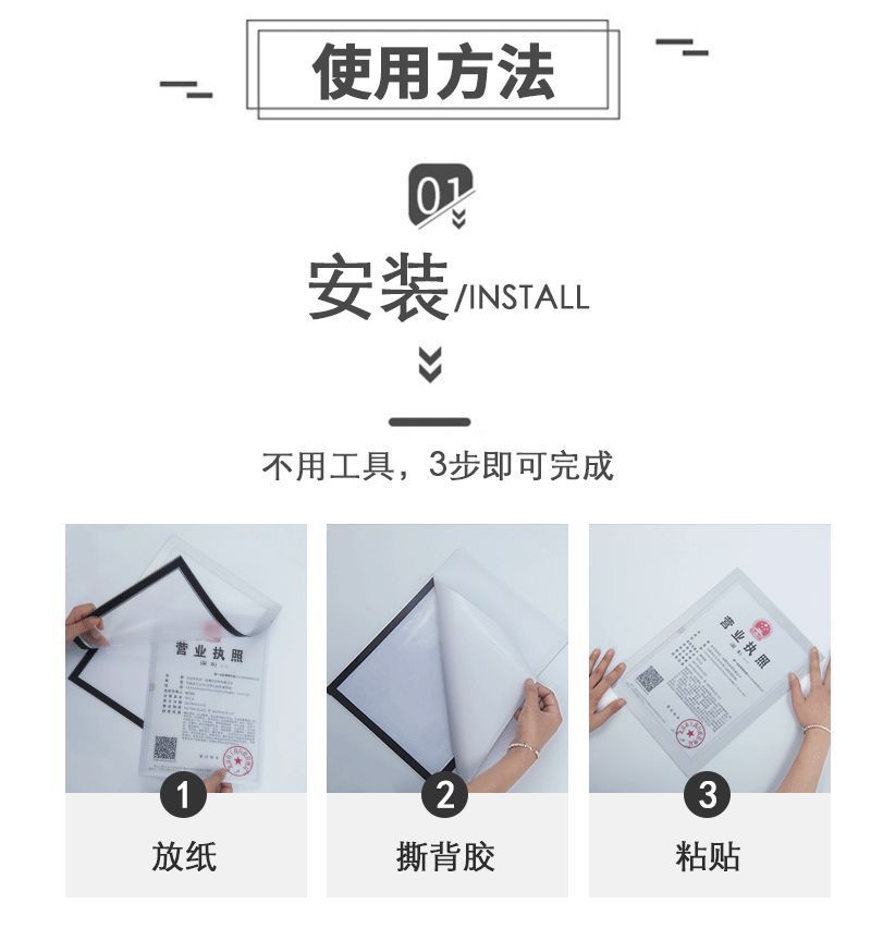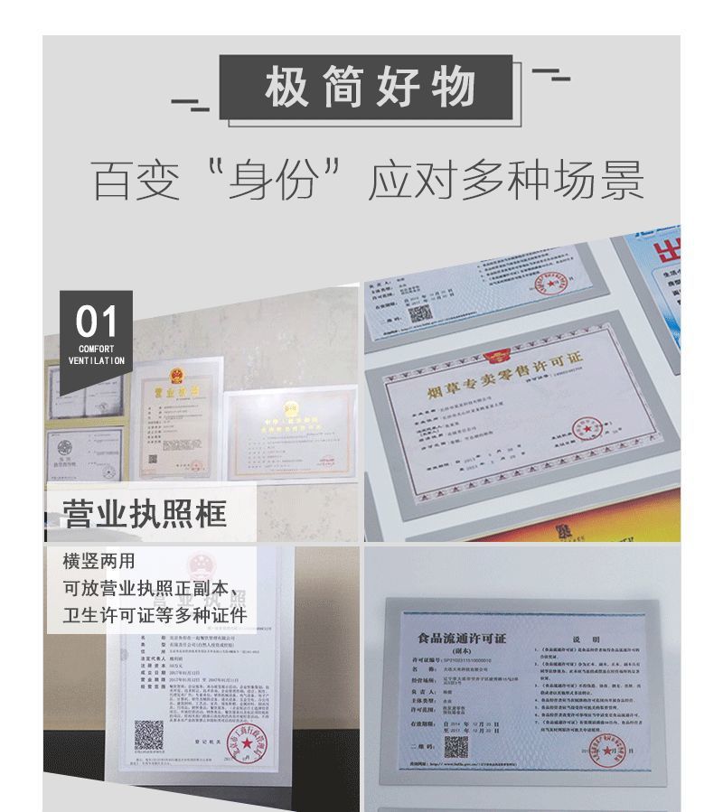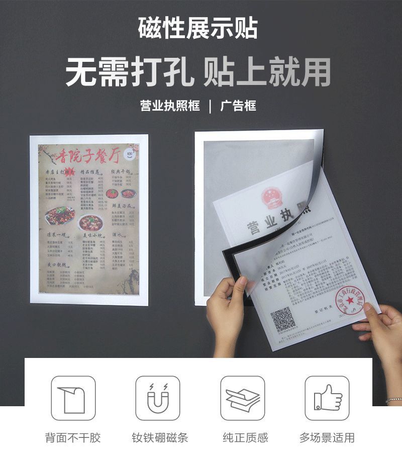 비즈니스 라이센스 사진 프레임 광고 포스터 프레임 벽에 장착 된 자기 디스플레이 스티커 A3A4 장점 디스플레이 벽걸이 사진 프레임의 원본 인증서스토어 가기