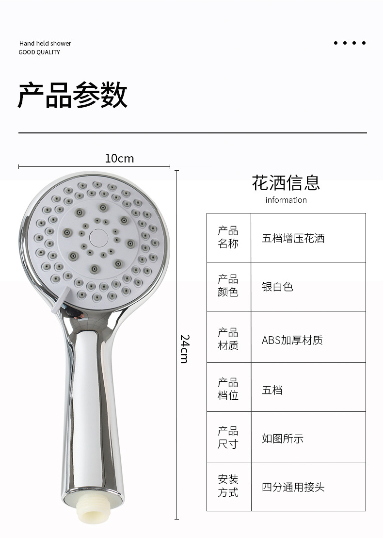 • 펀치베이스가없는 실버 흰색 5 단 샤워