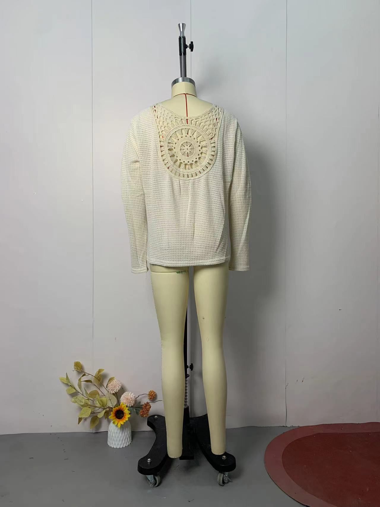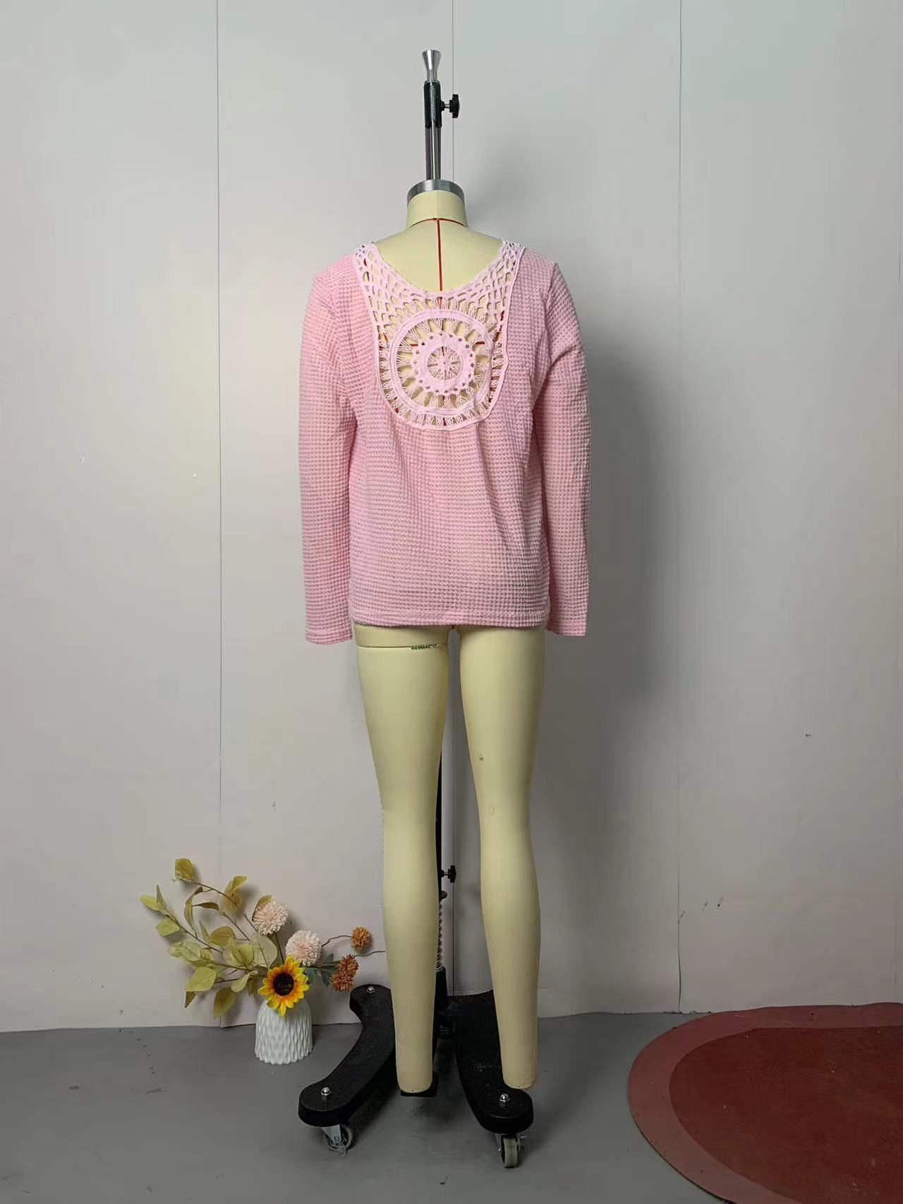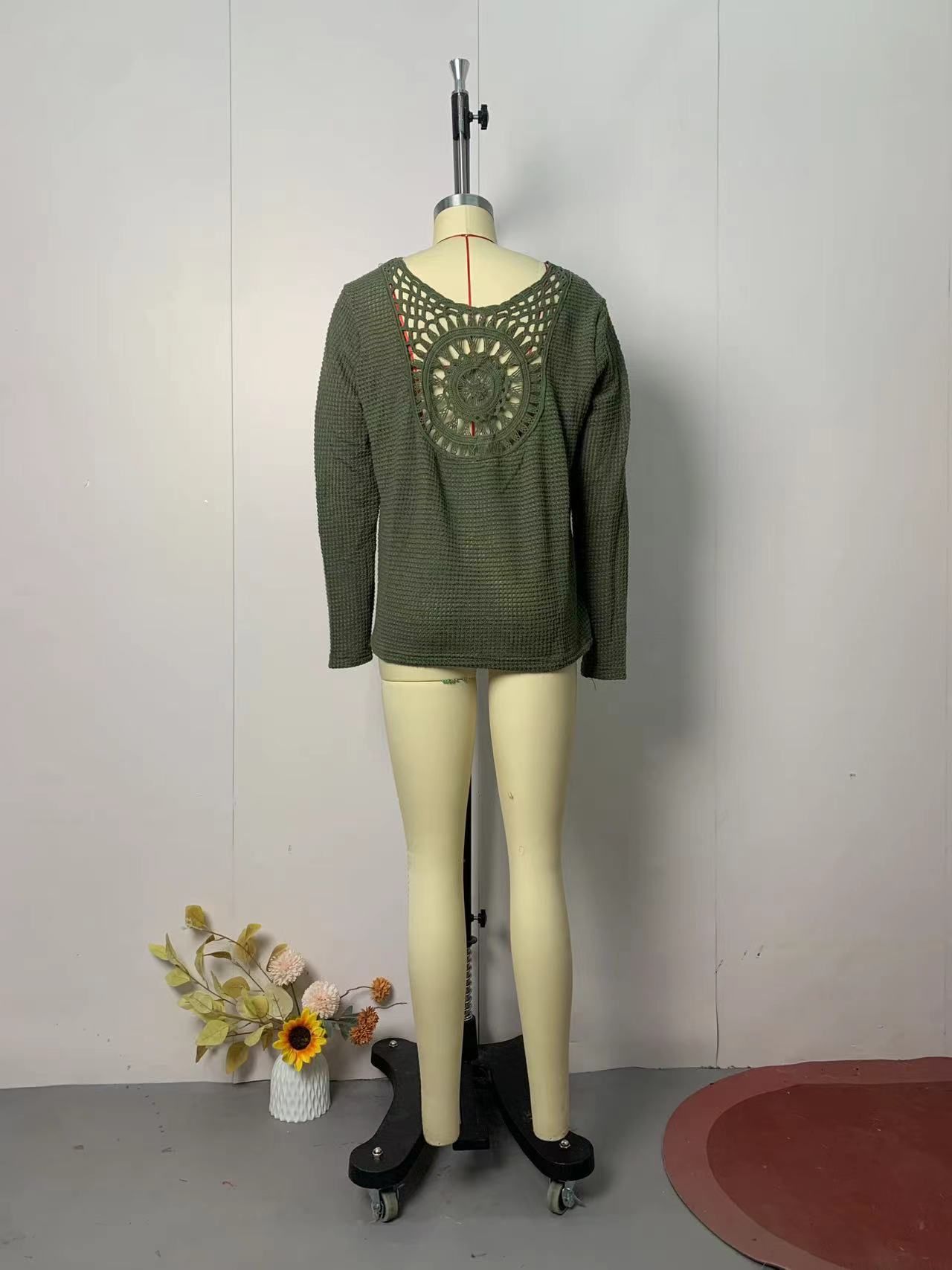 2024 년 여름 새로운 유럽과 미국의 아마존 국경 단색 패션 중공 V-Neck 섹시한 백리스 니트 블라우스스토어 가기