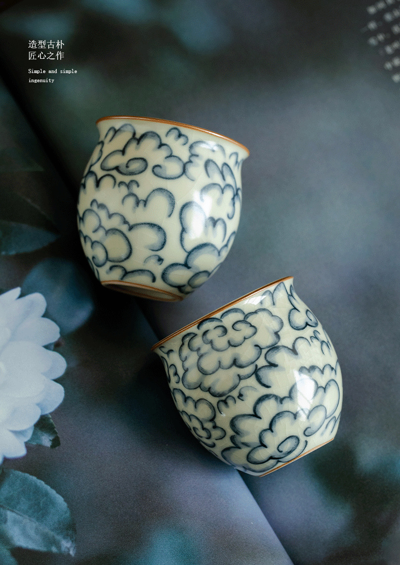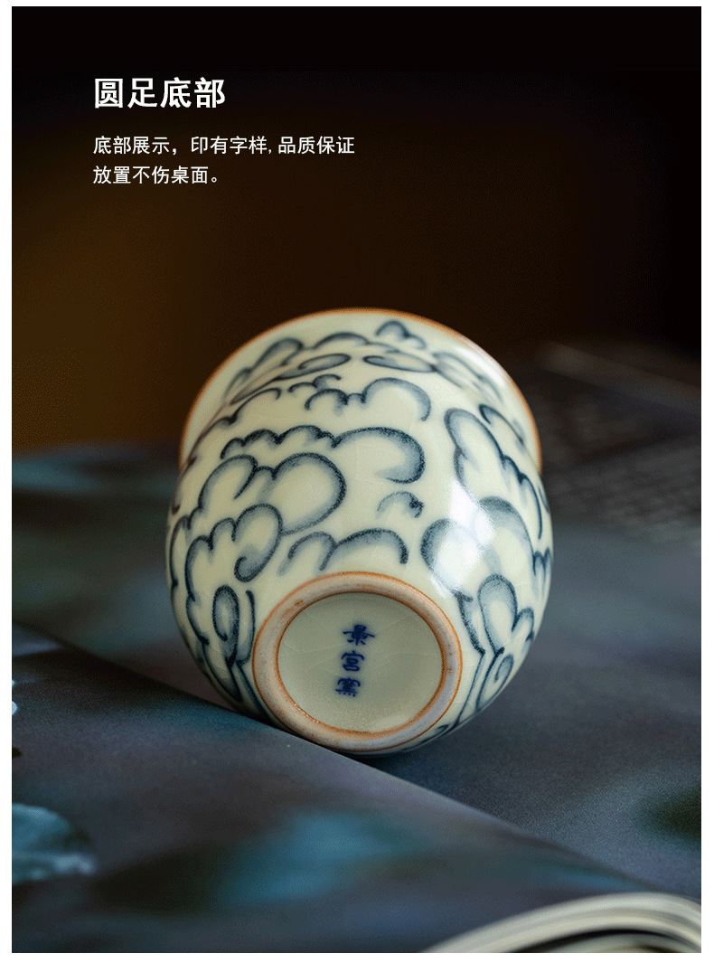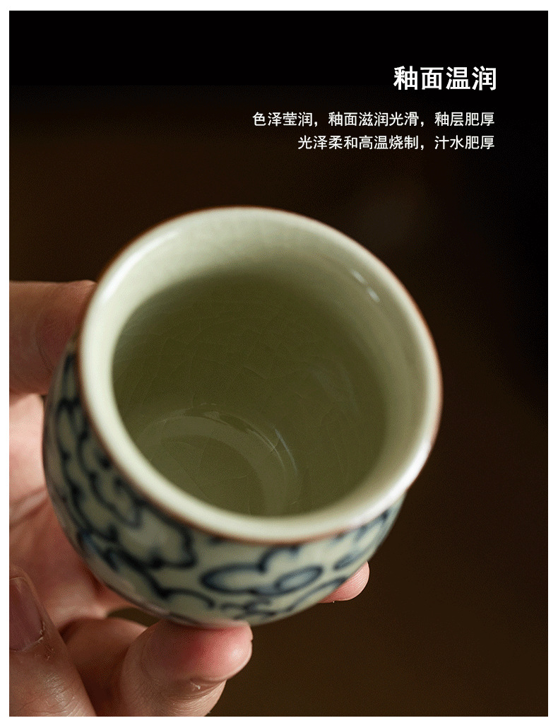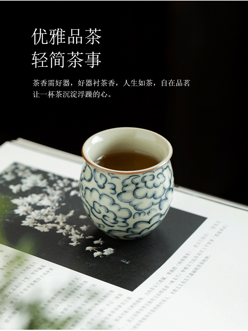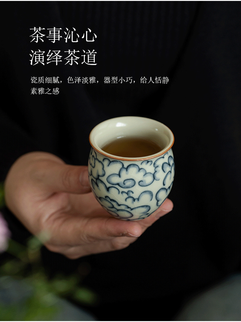 Ru Kiln 마스터 컵 단일 작은 차 컵 가정용 세라믹 작은 차 컵 개인 차 그릇 파란색과 흰색 도자기 차 컵