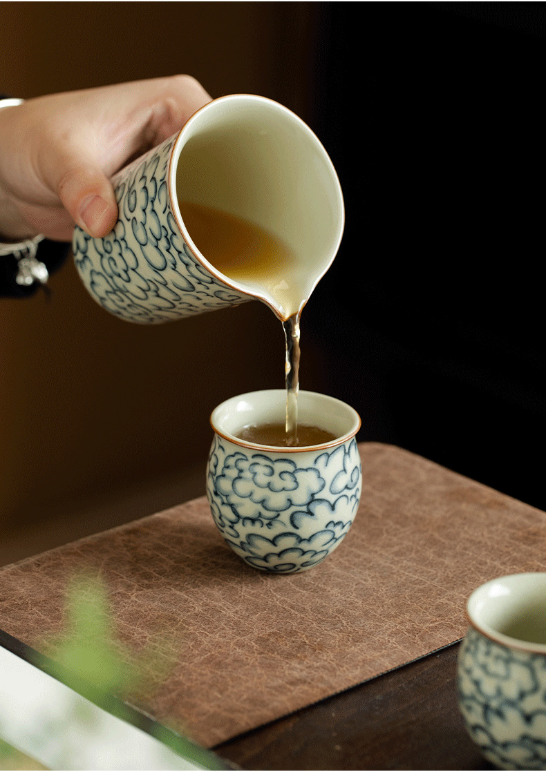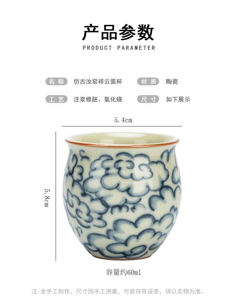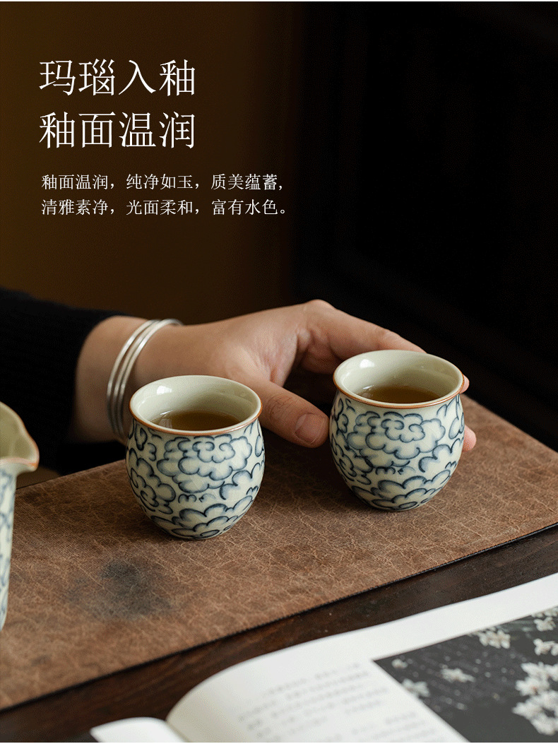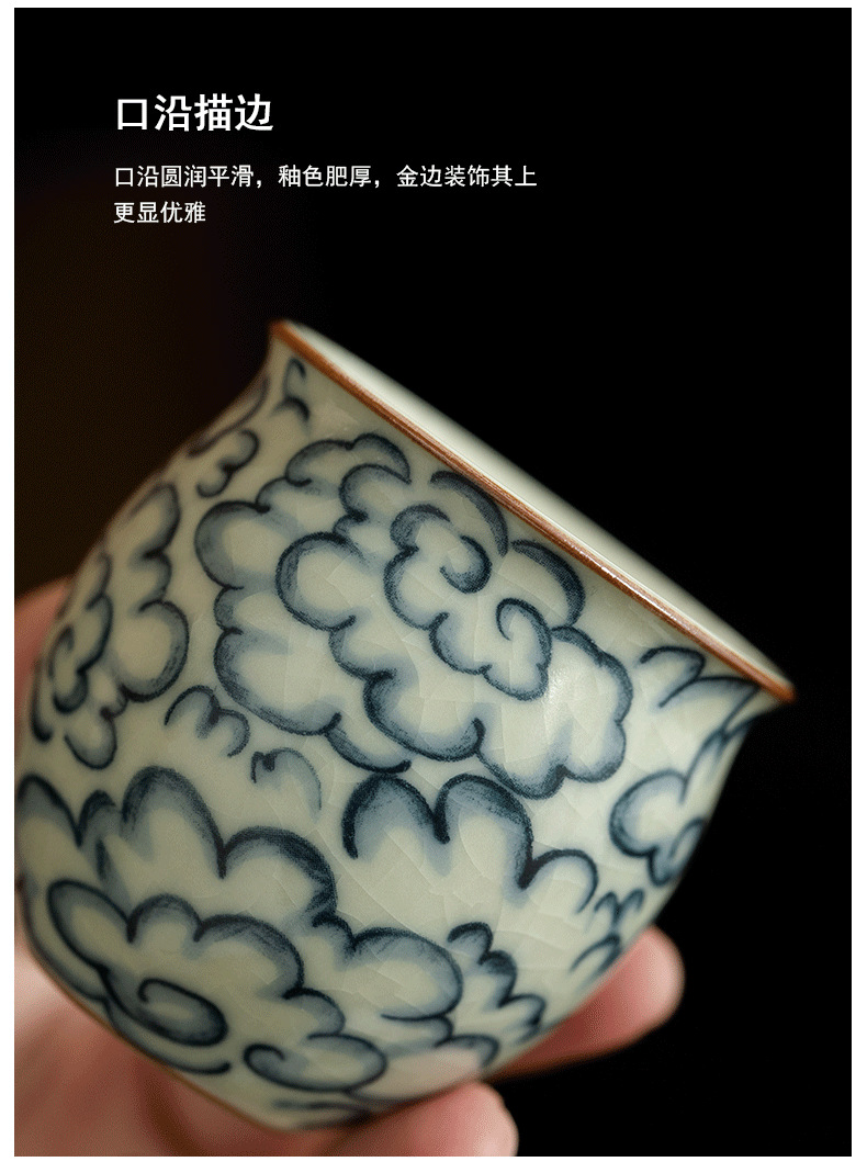 Ru Kiln 마스터 컵 단일 작은 차 컵 가정용 세라믹 작은 차 컵 개인 차 그릇 파란색과 흰색 도자기 차 컵