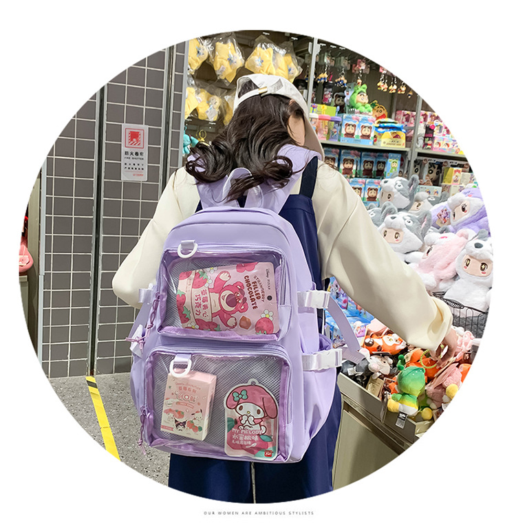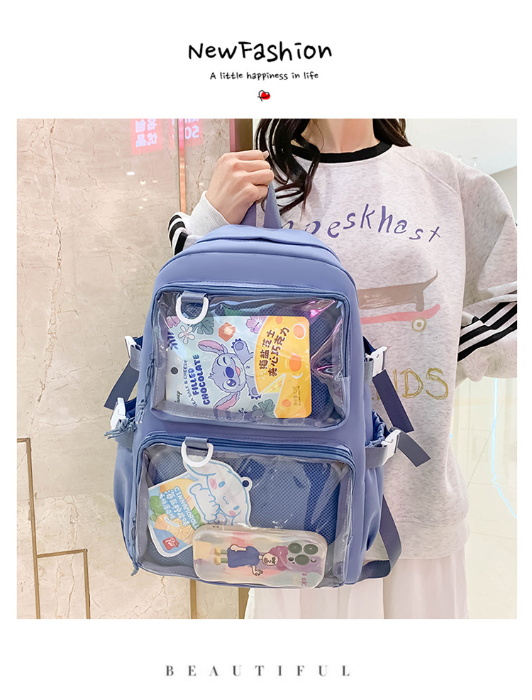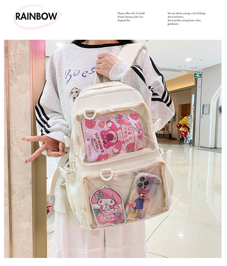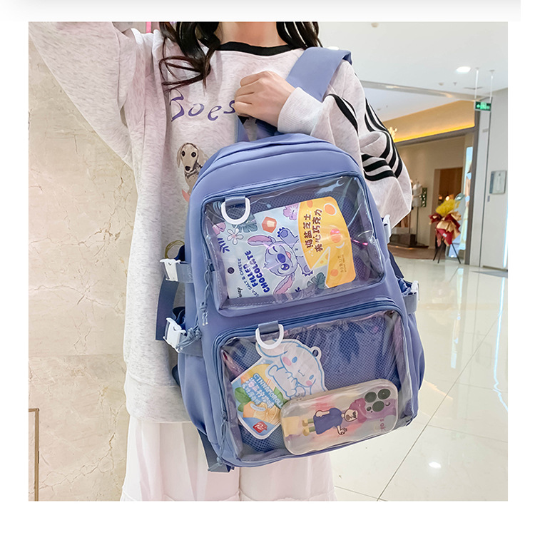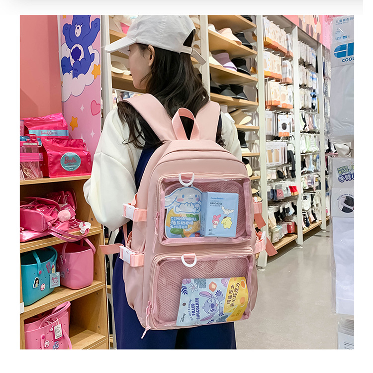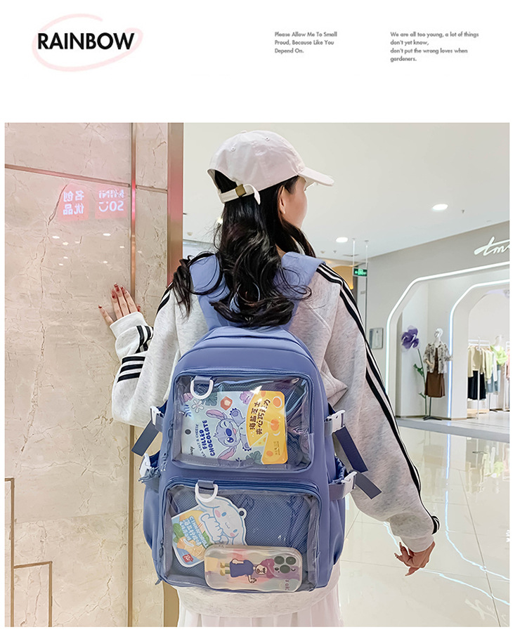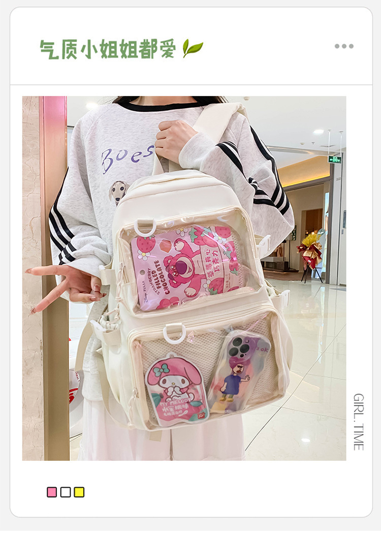 봄과 여름 새로운 투명한 학교 가방 여성 배낭 어깨 가방 멀티 사용 중학교 고등학교 학생 높은 가치 어깨 가방스토어 가기