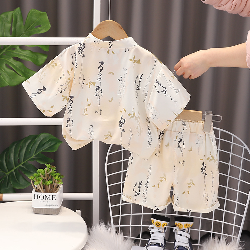 무료 배송 Yikids 여름 새 소년 중국 스타일 셔츠 짧은 소매 세트 2 조각 캐주얼 반바지 소년 아기스토어 가기