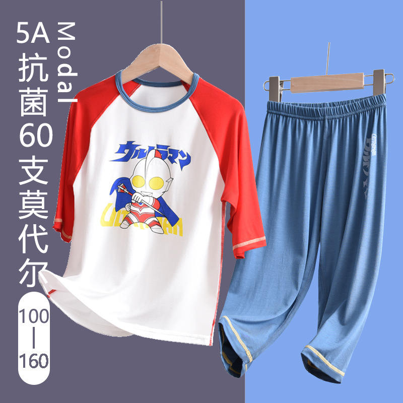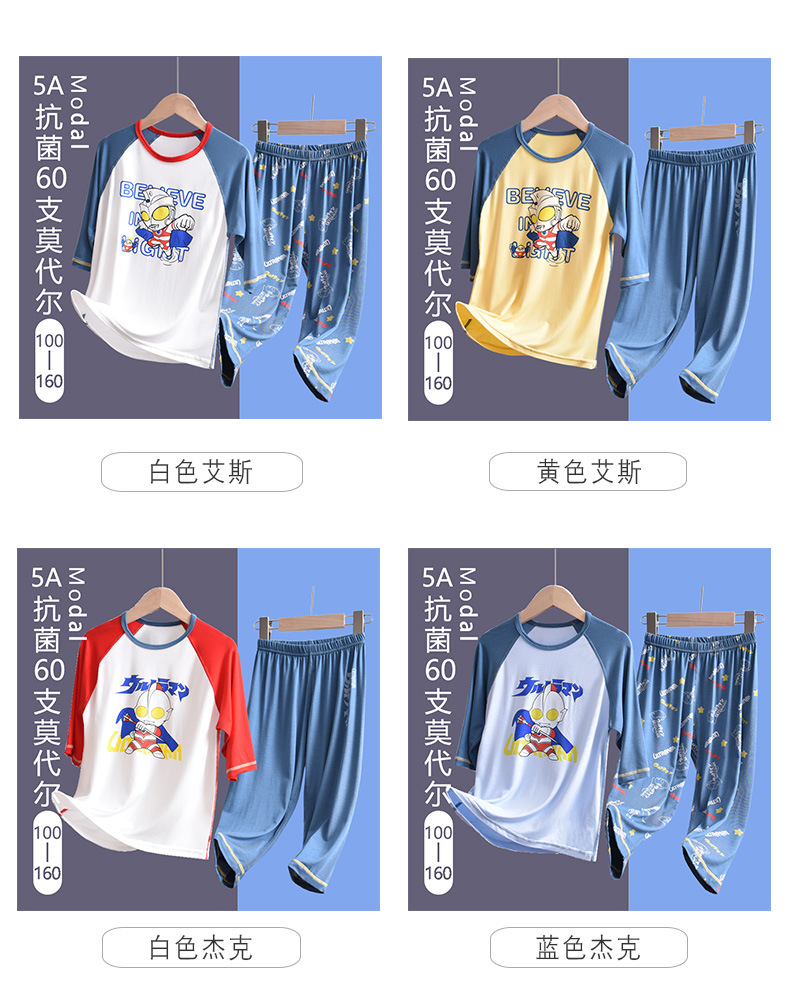 Altman Boys의 어린이 얇은 속옷 세트 모달 7 점 소매 아기의 중간 및 큰 어린이 집 옷 잠옷스토어 가기