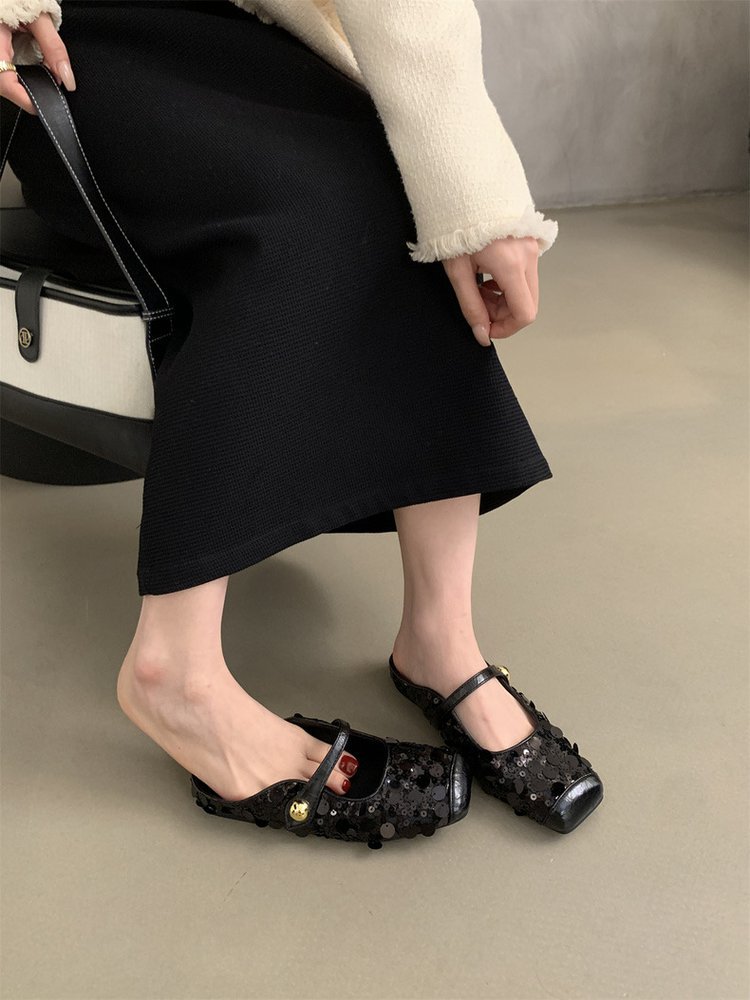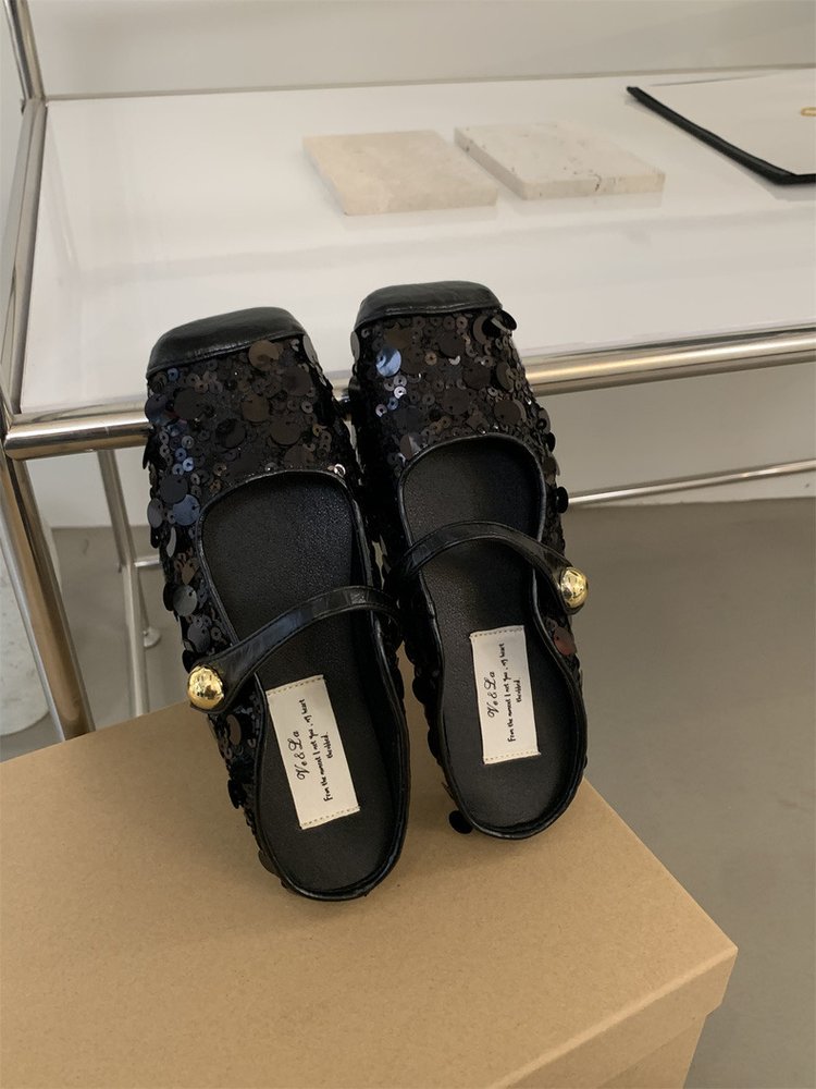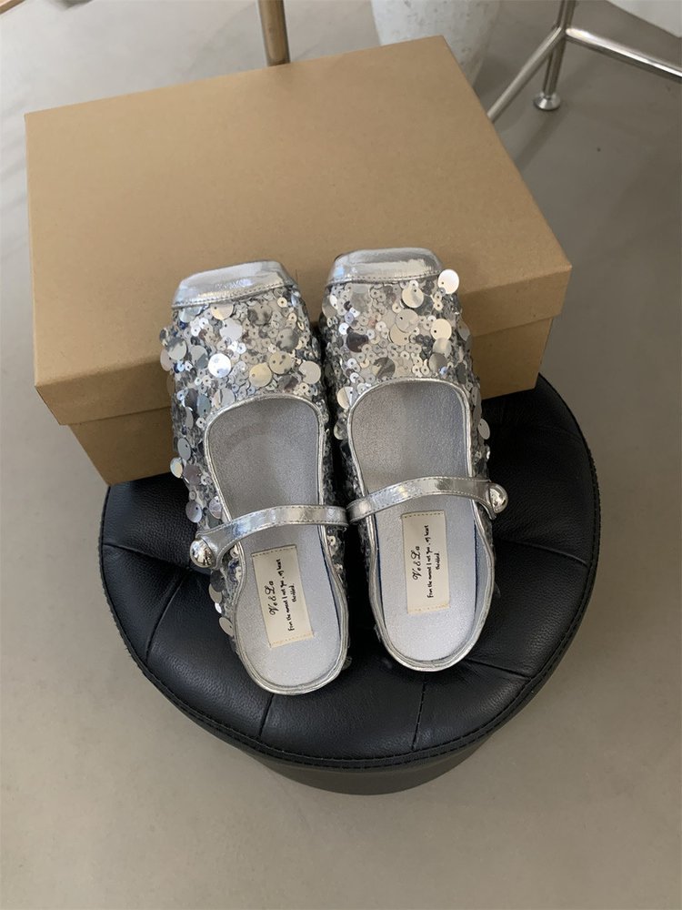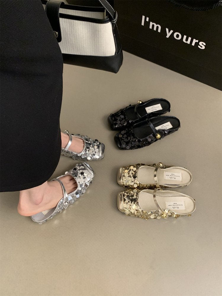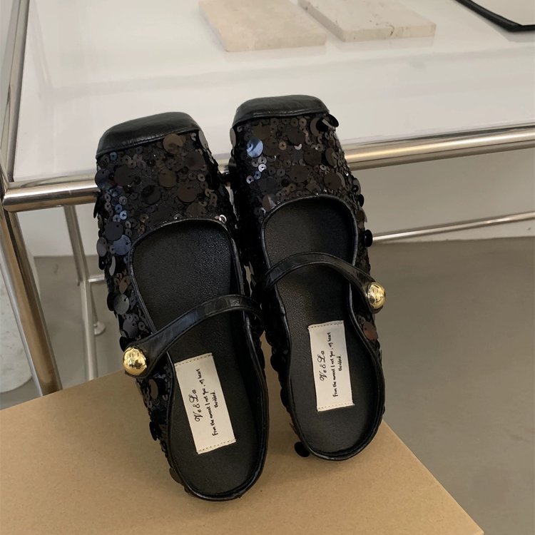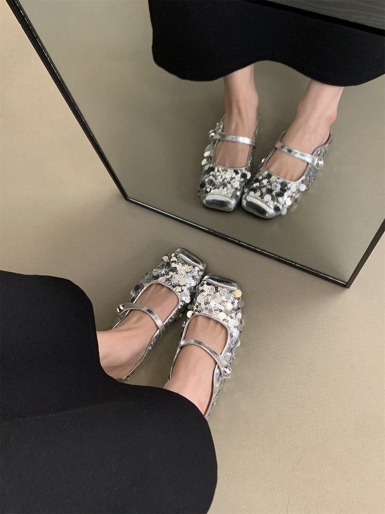 실버 Sequin Baotou 하프 슬리퍼 여성용 여름 아우터 부드러운 우아한 페어리 스타일 저녁 부드러운 플랫 뮬러 샌들