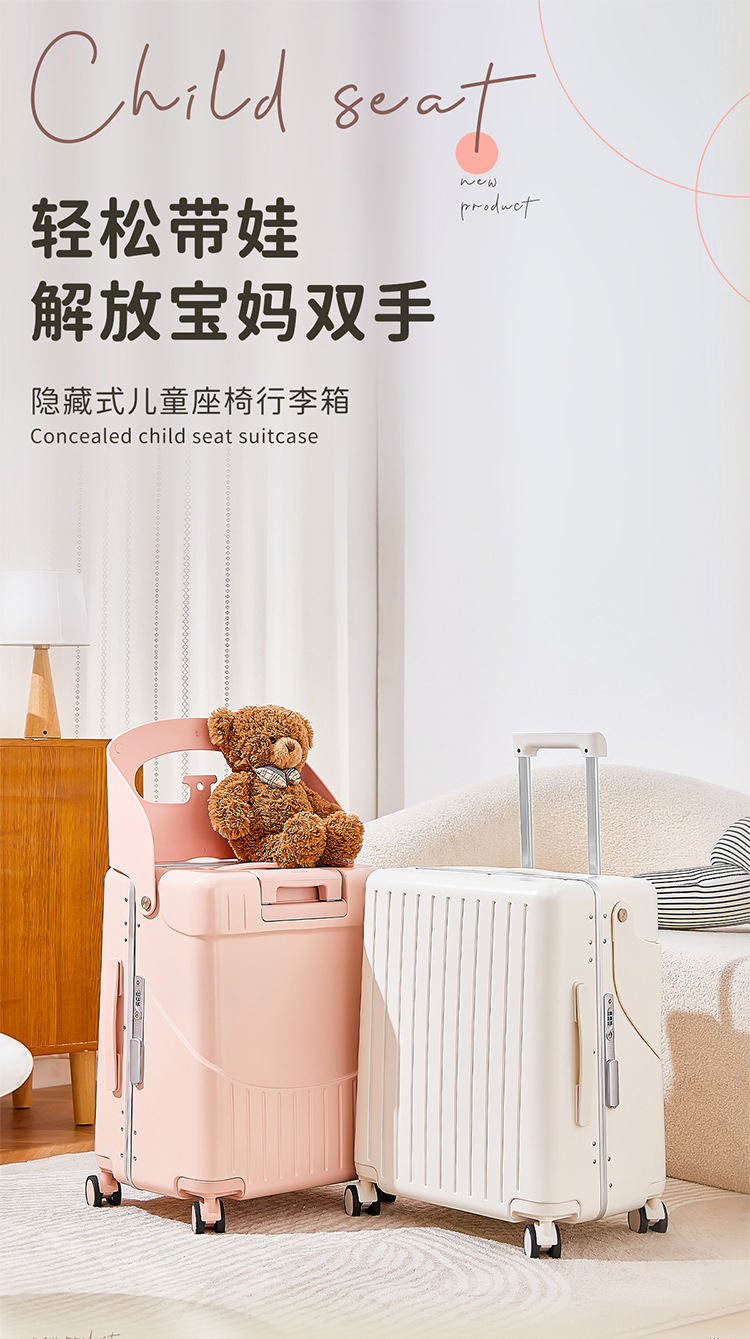 2025년 신형 엄마용 박스형 유모차 겸용 여행가방, 아이와 함께 탈 수 있는 어린이용 캐리어, 20inch 기내 반입 가능 여행가방