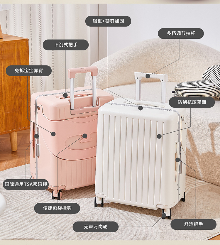 2025년 신형 엄마용 박스형 유모차 겸용 여행가방, 아이와 함께 탈 수 있는 어린이용 캐리어, 20inch 기내 반입 가능 여행가방스토어 가기