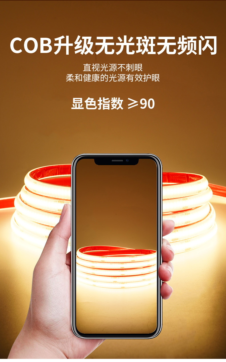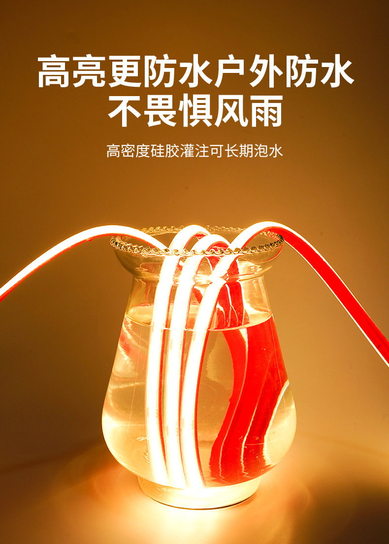 • COB 접착제 자체 접착 24V 388 램프 1 미터 따뜻한 빛