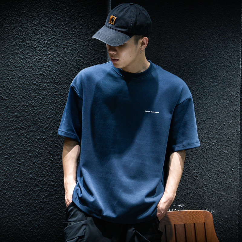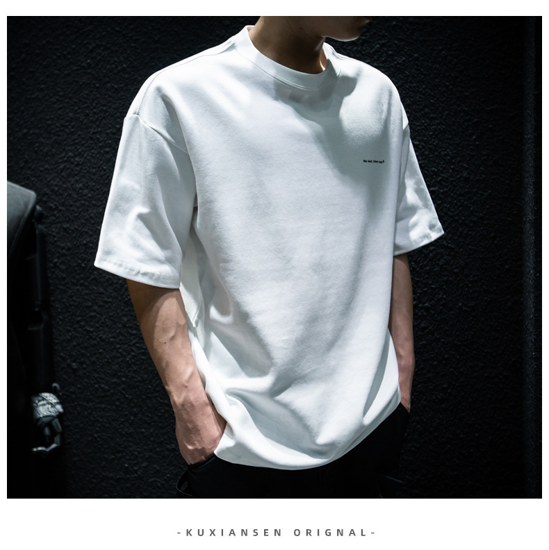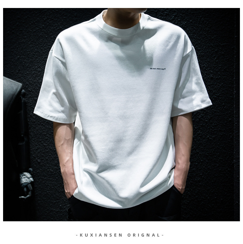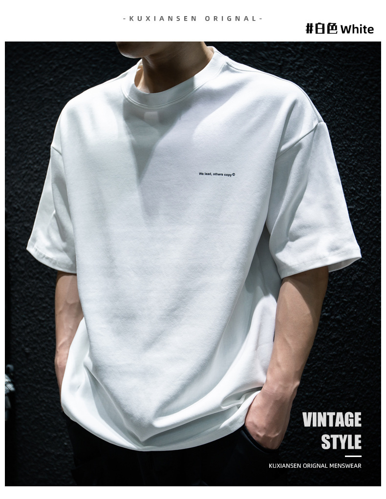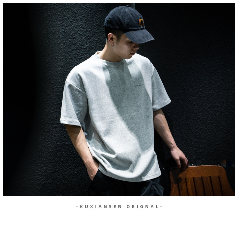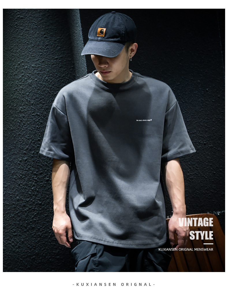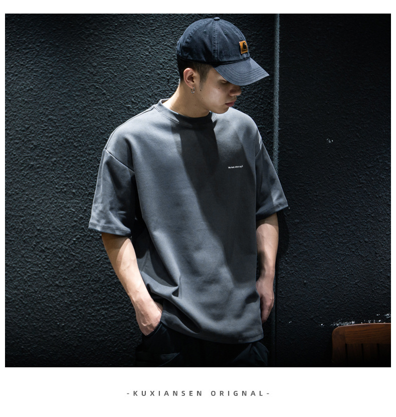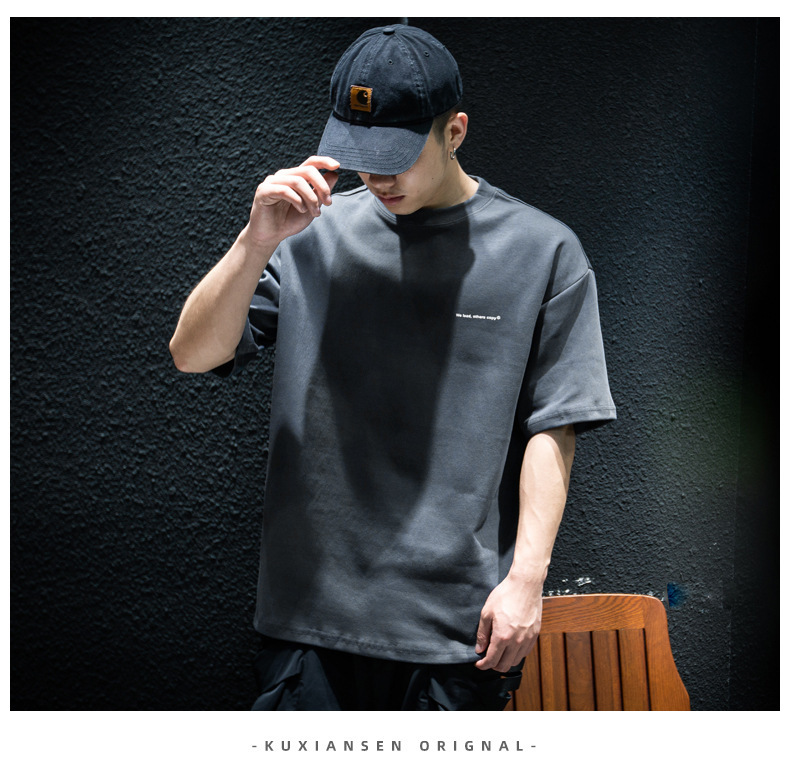 300g 헤비 심플 반팔 티셔츠 남성용 루즈 트렌디 브랜드, 여름용 대형 반소매 팻 맨 패셔너블 올 매치 티셔츠스토어 가기