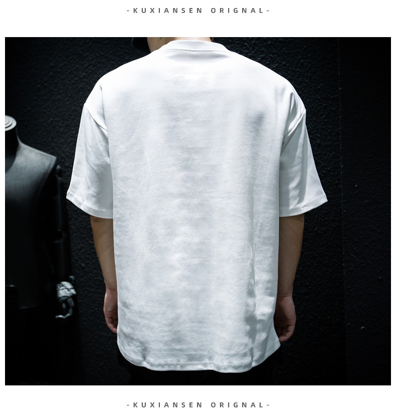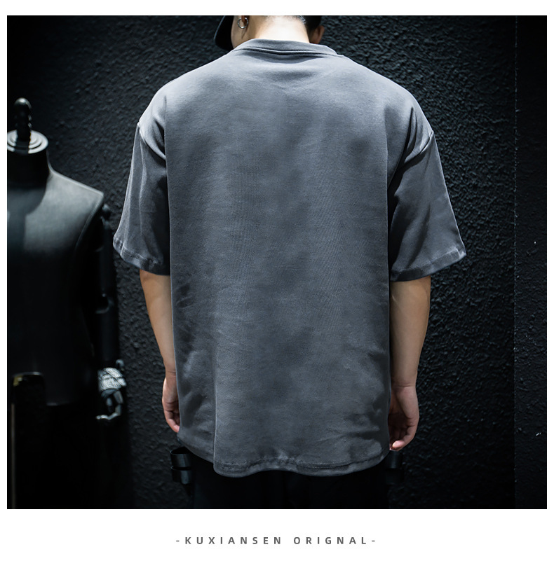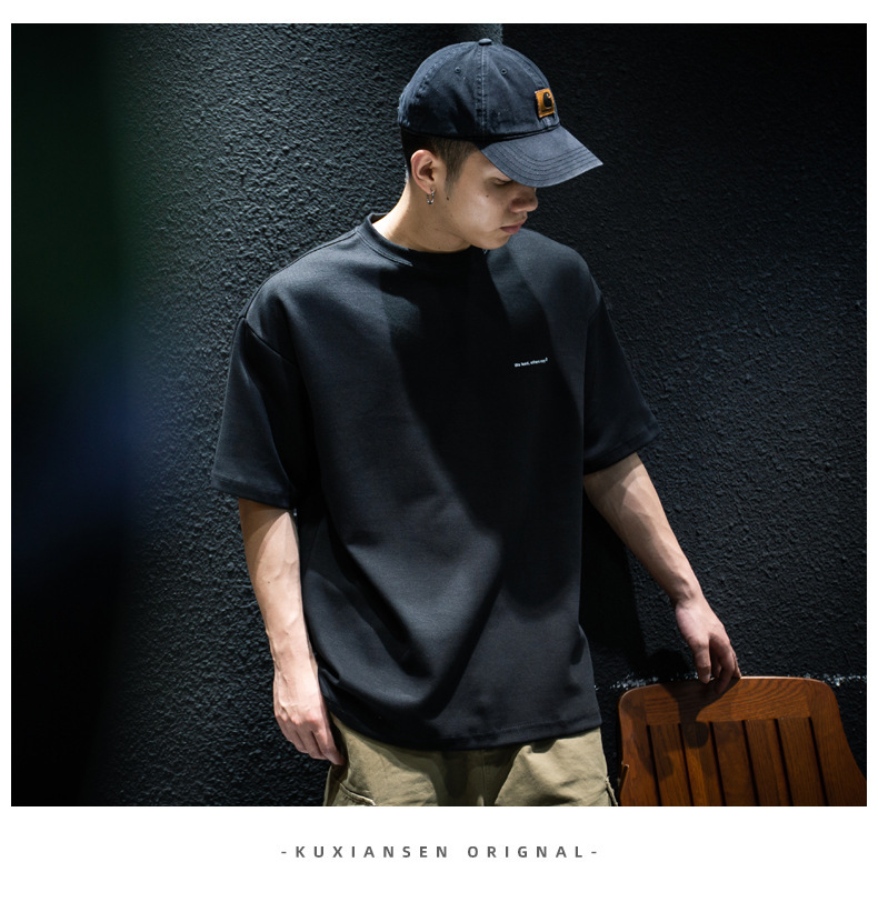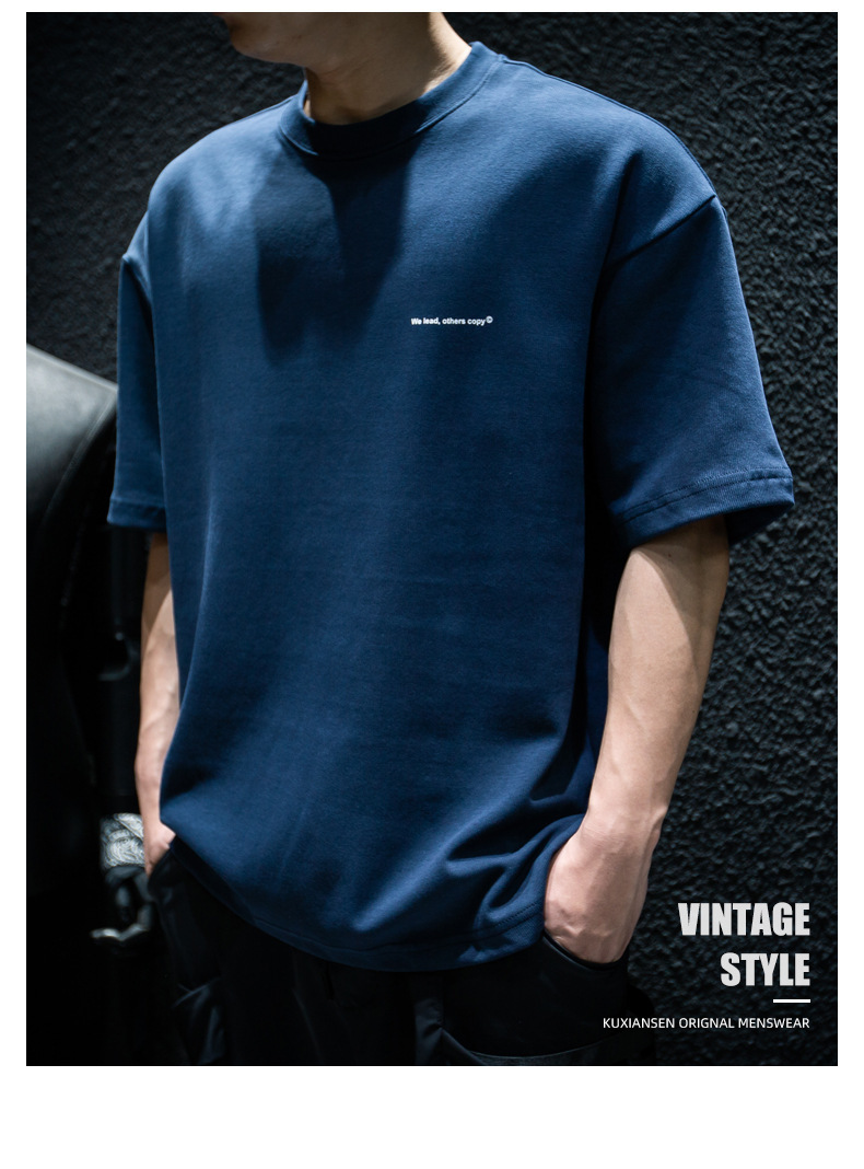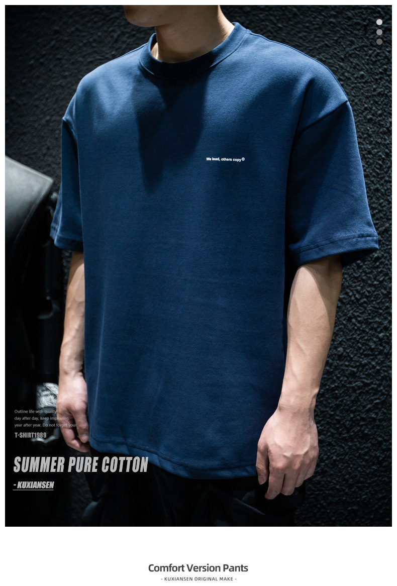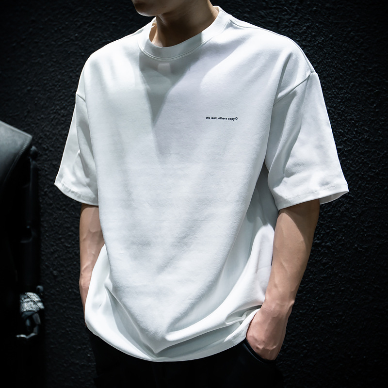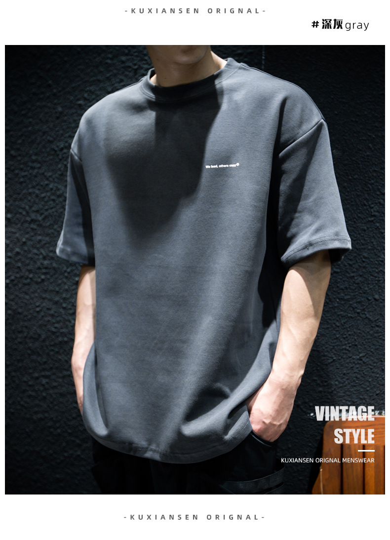 300g 헤비 심플 반팔 티셔츠 남성용 루즈 트렌디 브랜드, 여름용 대형 반소매 팻 맨 패셔너블 올 매치 티셔츠스토어 가기