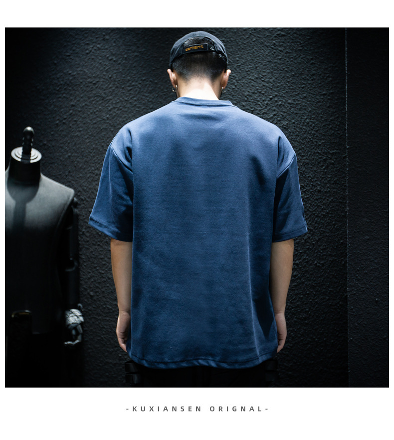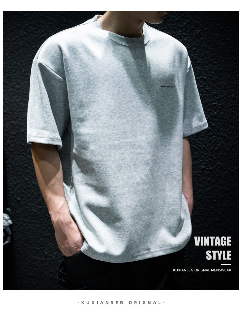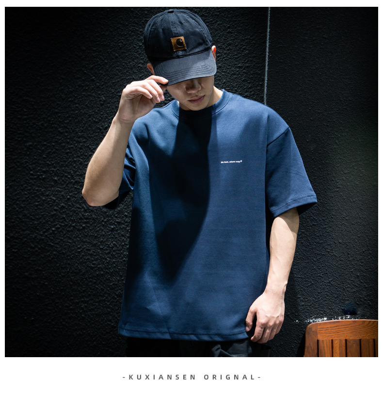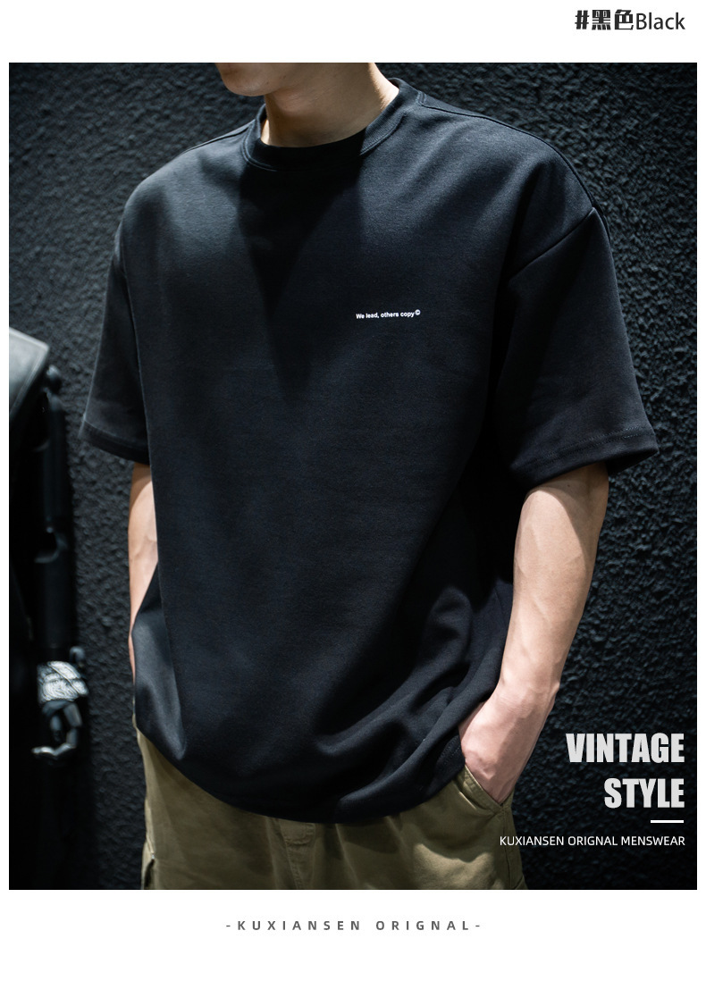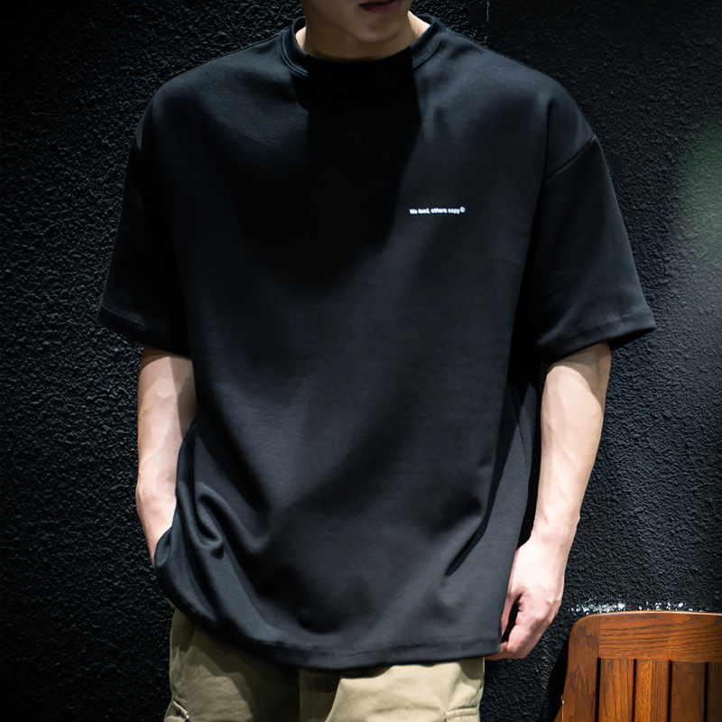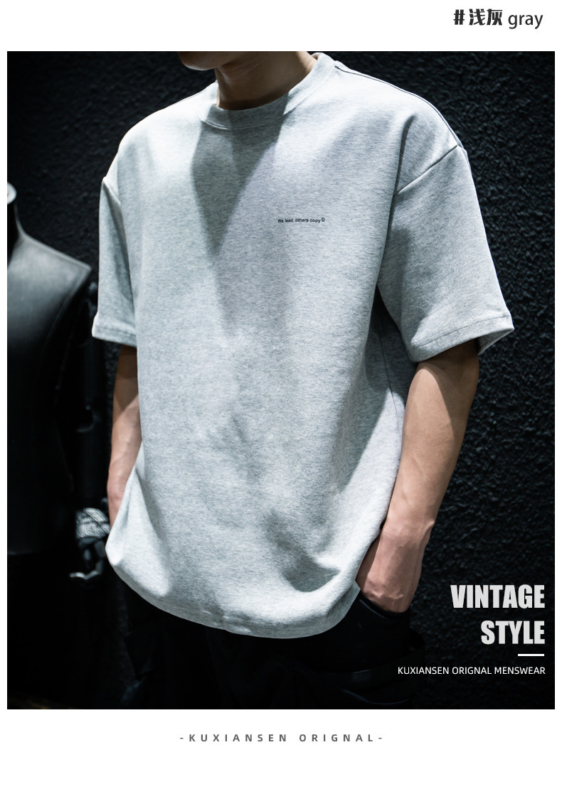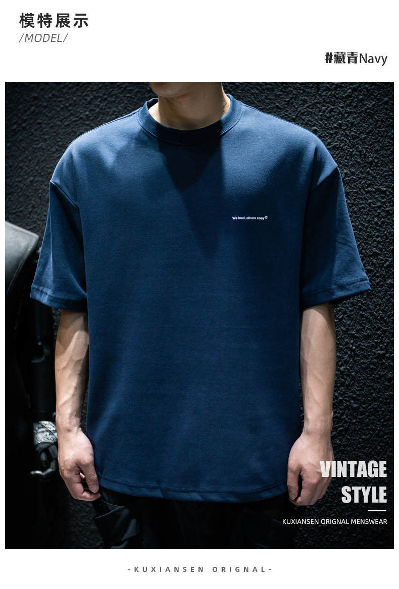 300g 헤비 심플 반팔 티셔츠 남성용 루즈 트렌디 브랜드, 여름용 대형 반소매 팻 맨 패셔너블 올 매치 티셔츠스토어 가기