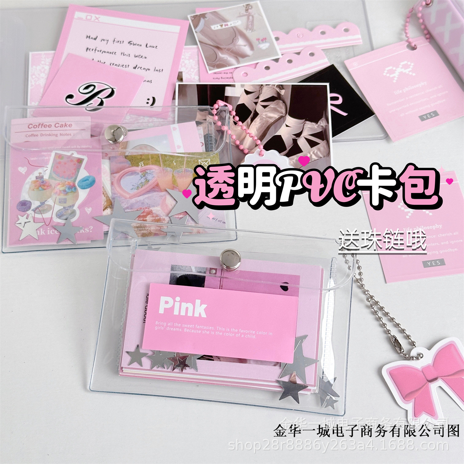 Ins 투명 두꺼운 카드 보관 보호 가방 펜던트 카드 방진 투명 보관 가방 가방 펜던트스토어 가기