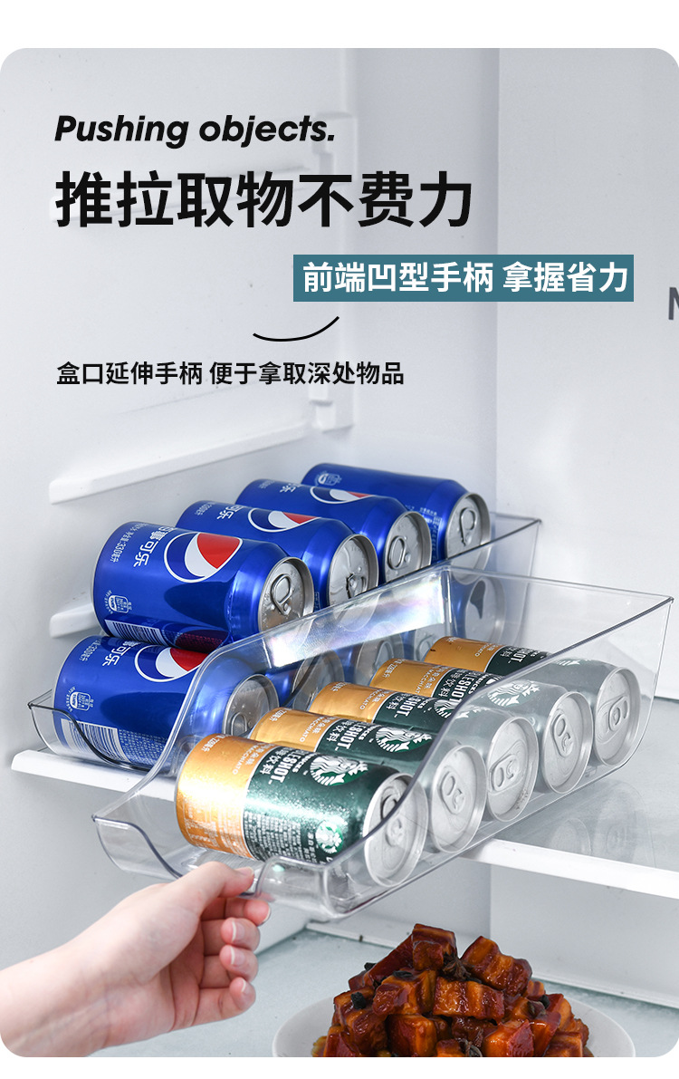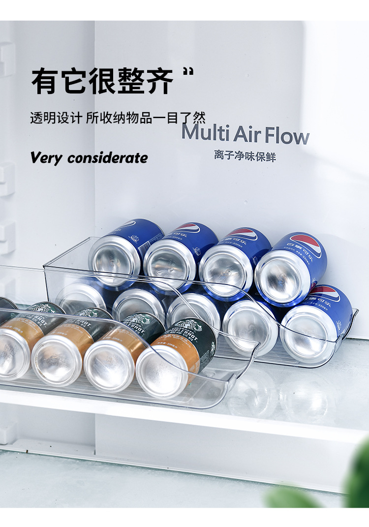 투명한 PET 플라스틱 냉장고 음료 대용량 저장 상자 자동 충전 투명 캔 저장 상자