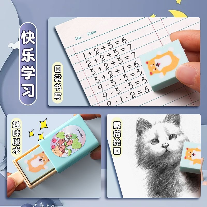 초등 학생을위한 델리 매직 박스 지우개 작은 휴대용 지우개 아이스크림 상자 지우개 71113스토어 가기
