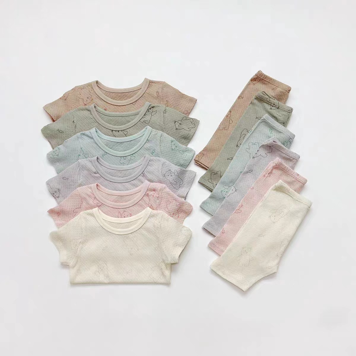 2025 한국판 유아복 시원한 반바지 반팔 홈웨어 세트 여름 아기 만화 통기성 투피스