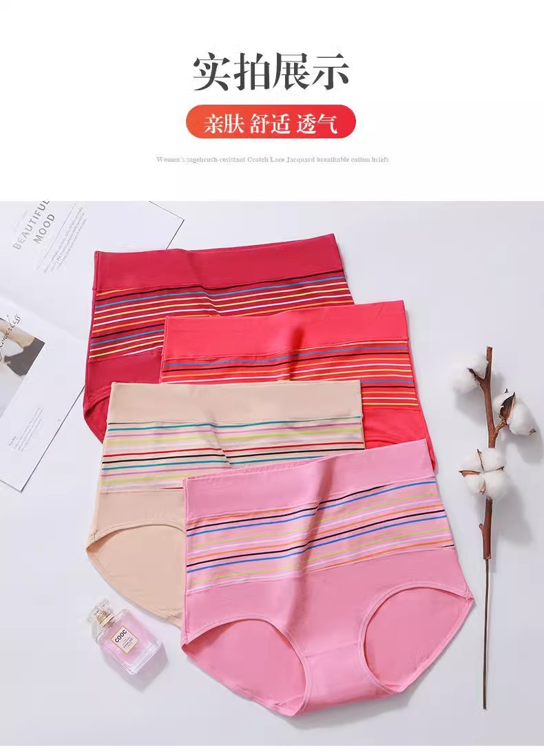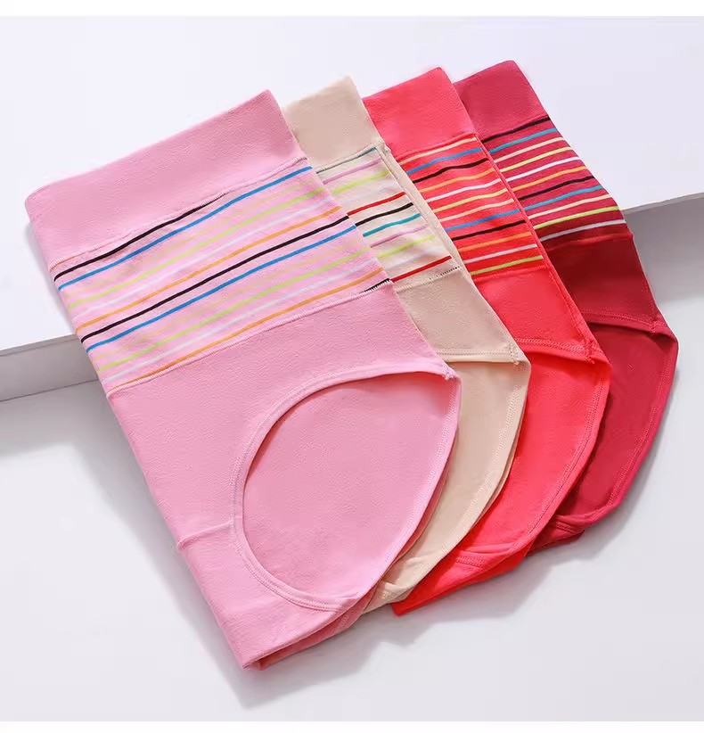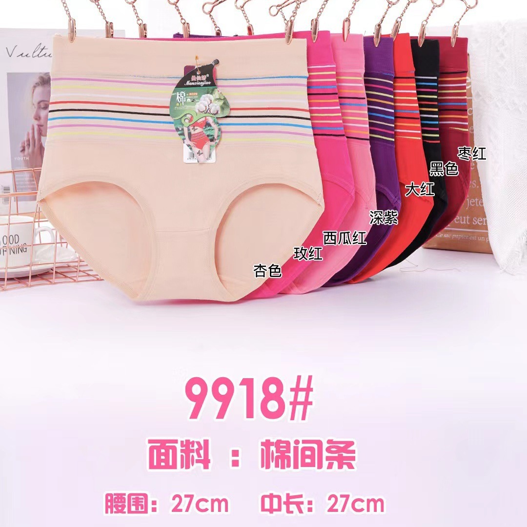 Manxianjiao 9918 여성 속옷 높은 허리 면 직물 코튼 크로치 줄무늬 복부 플러스 사이즈 통통한 브리프 바닥스토어 가기