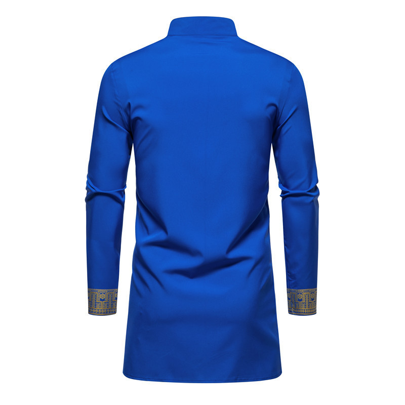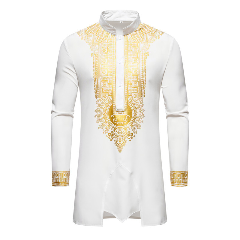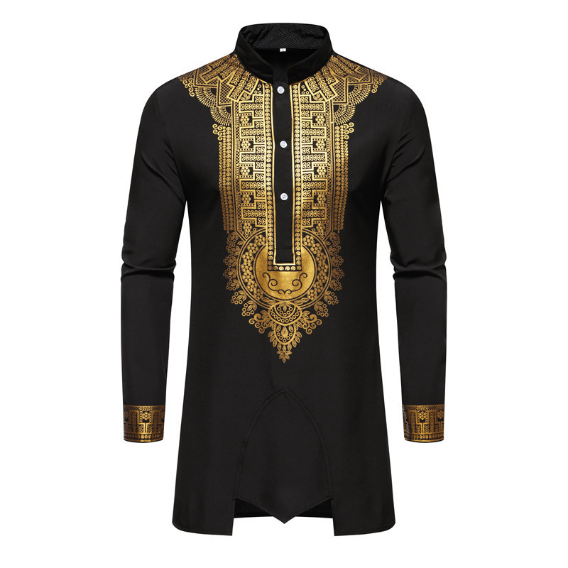 대외 무역 국경 남성 셔츠 세트 칼라 브론징 프린트 긴팔 셔츠 바지 아프리카 스타일 캐주얼 셔츠 남성용스토어 가기