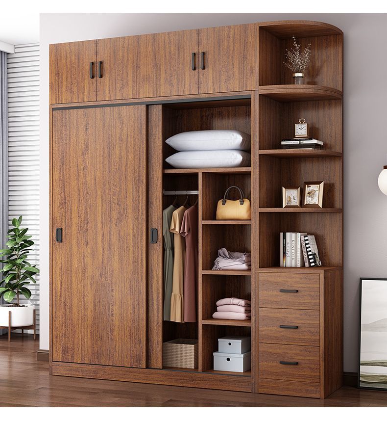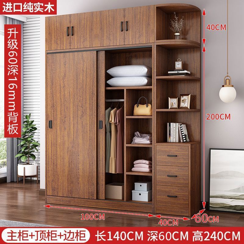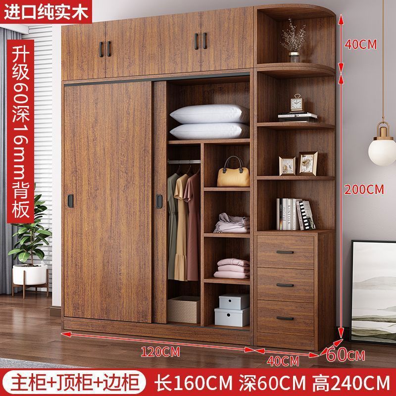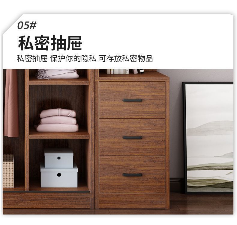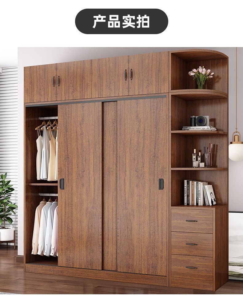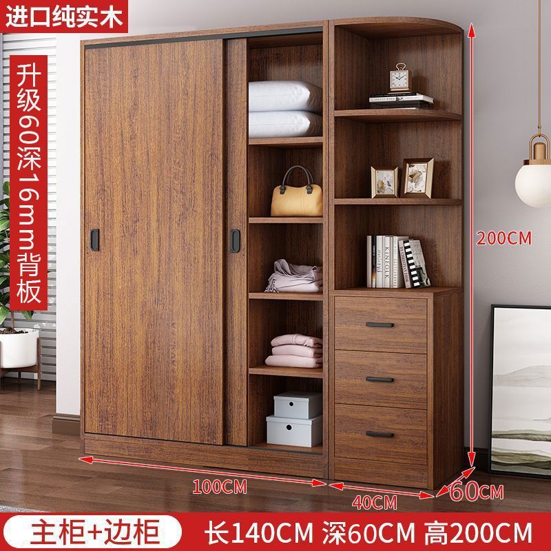 단단한 나무 옷장 홈 침실 임대 방 간단한 경제적 인 가방 설치 보관 보관 옷장 슬라이딩 도어