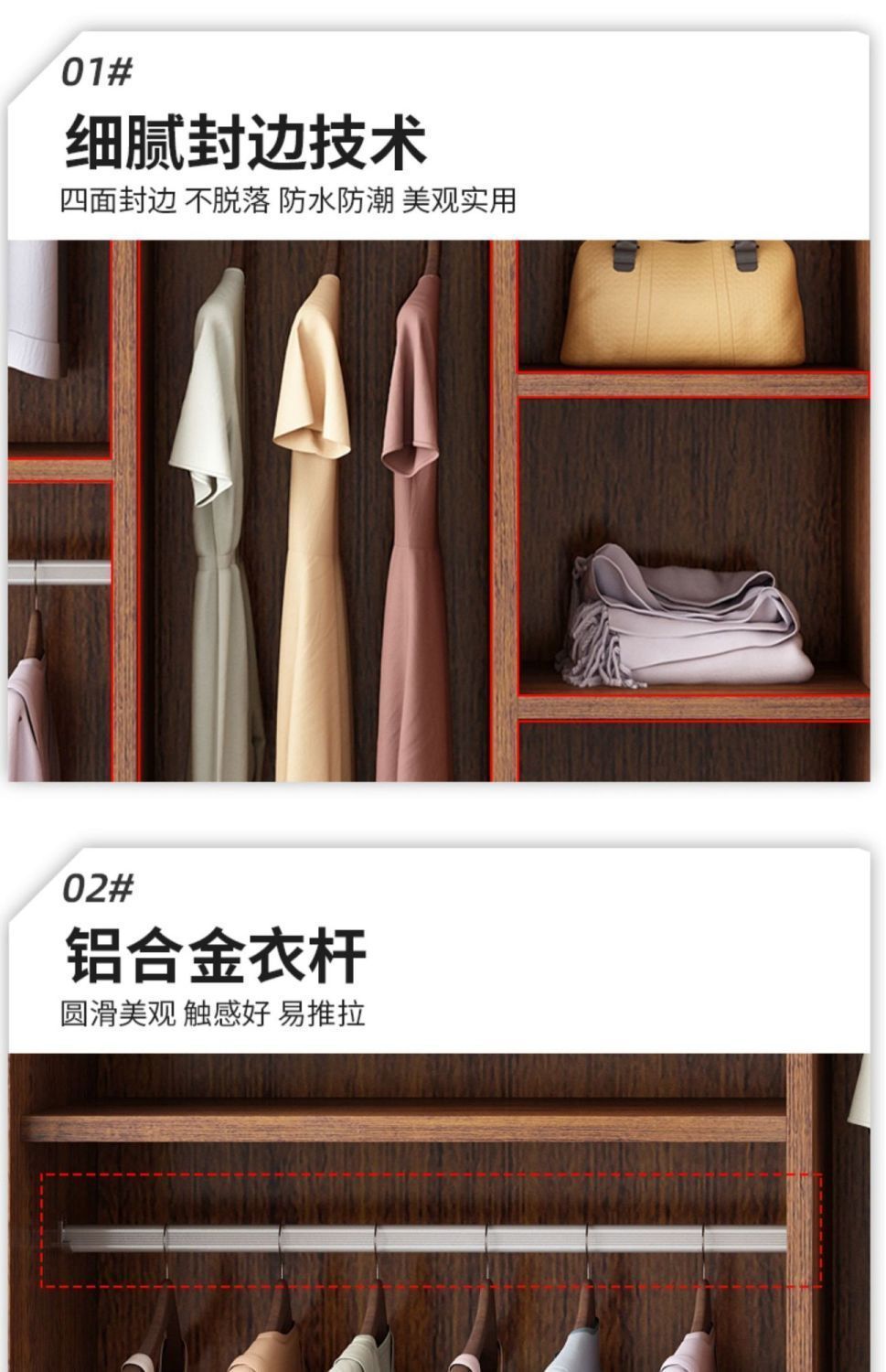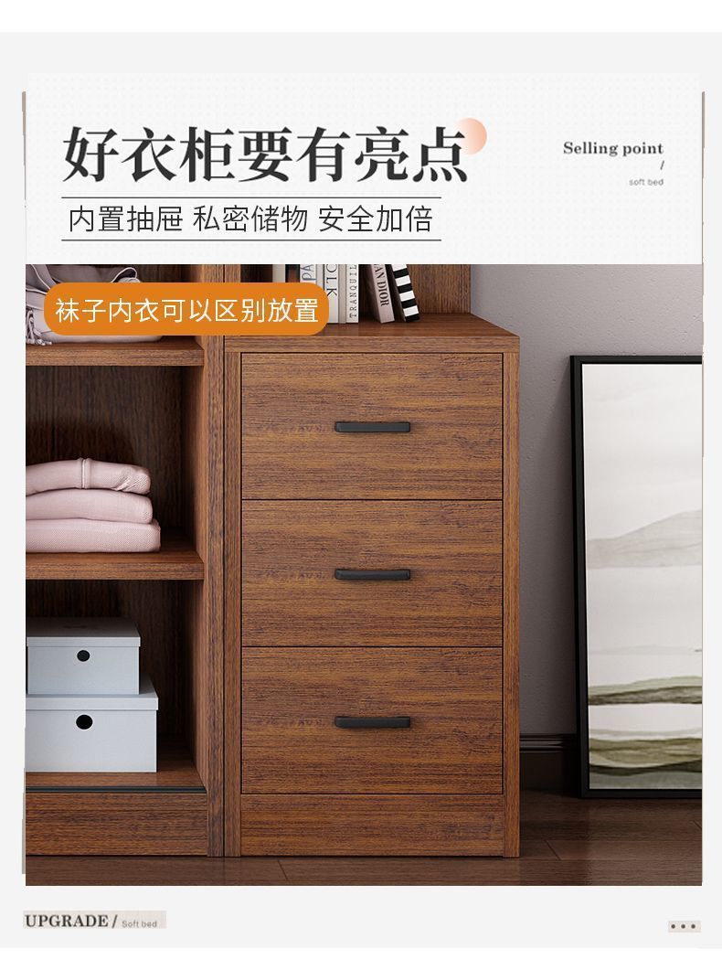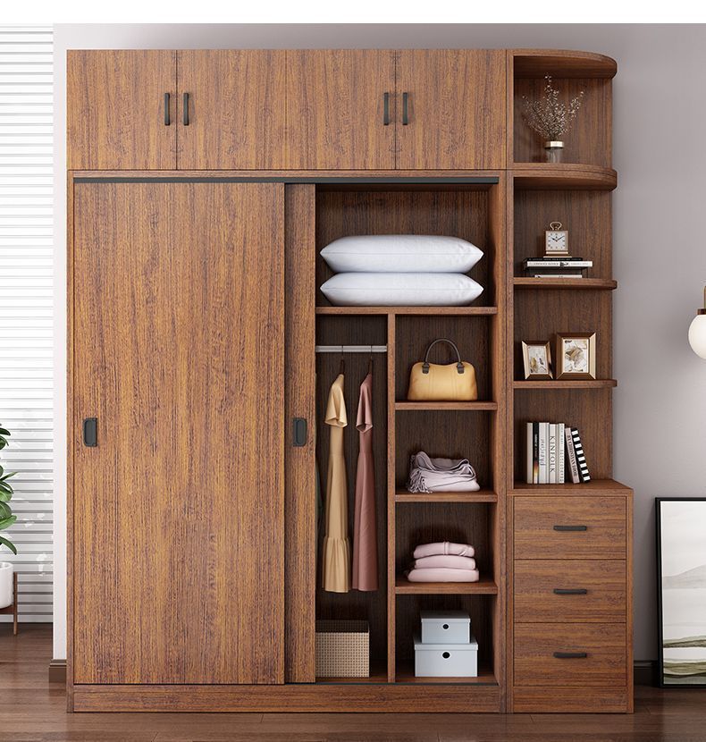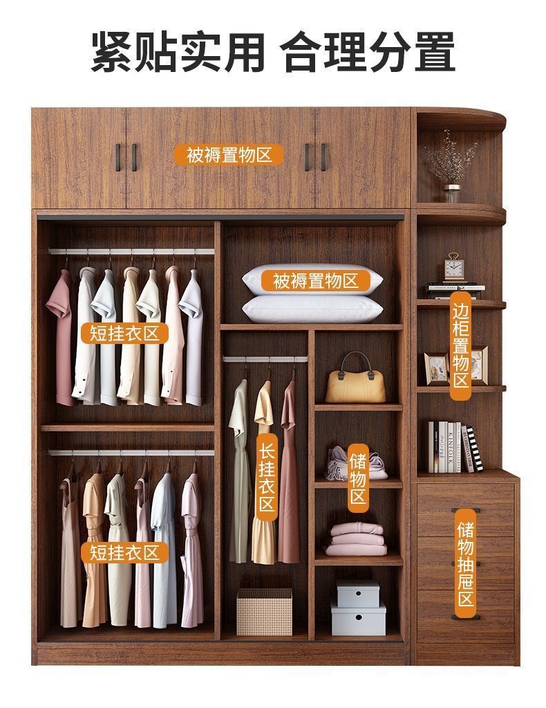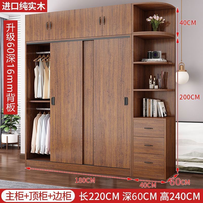 단단한 나무 옷장 홈 침실 임대 방 간단한 경제적 인 가방 설치 보관 보관 옷장 슬라이딩 도어