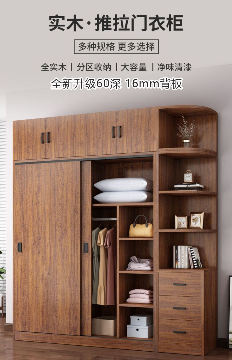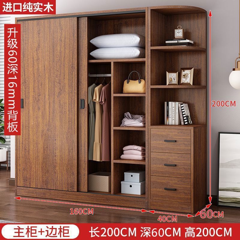 단단한 나무 옷장 홈 침실 임대 방 간단한 경제적 인 가방 설치 보관 보관 옷장 슬라이딩 도어스토어 가기
