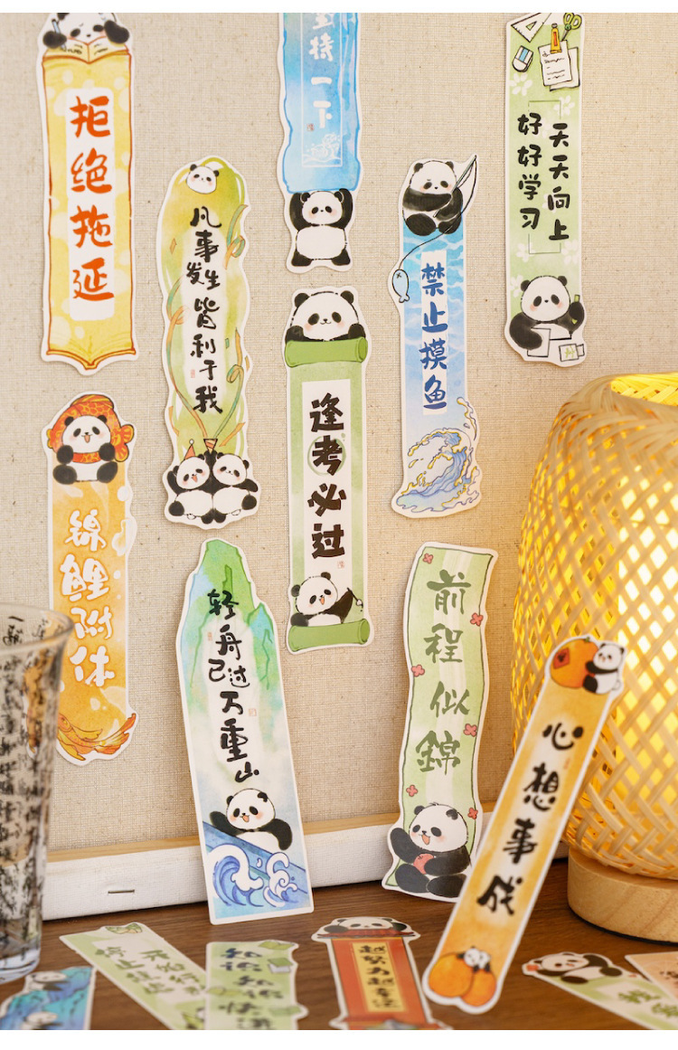 Mo Mo Ai Feng 박스 특수 모양의 책갈피 모든 테스트가 시리즈를 통과 할 것입니다 만화 손으로 그린 팬더 학습 및 독서 책자스토어 가기