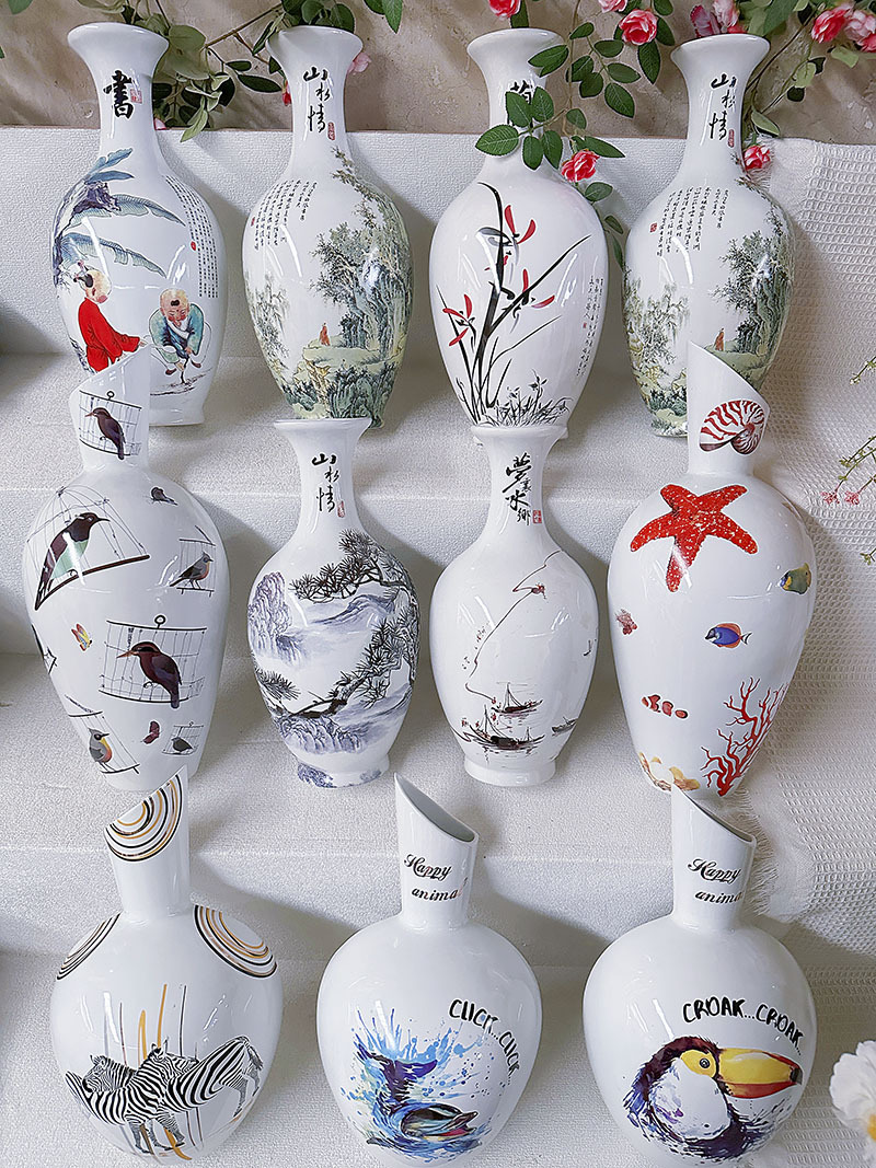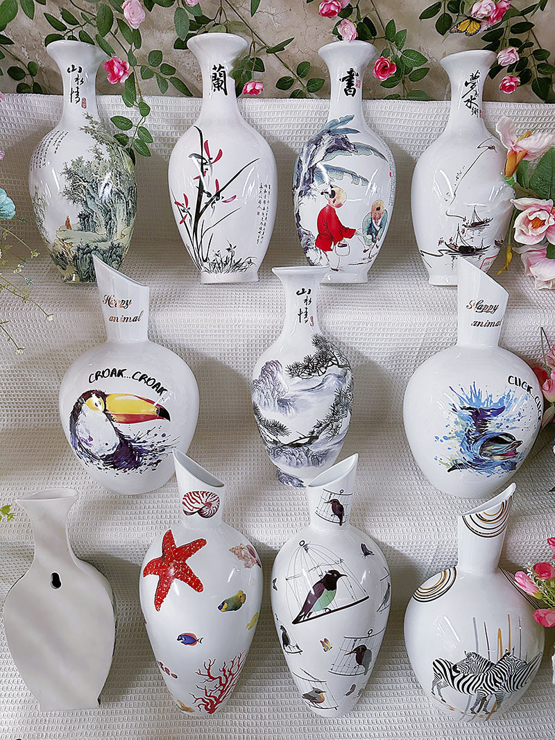 선 중국 스타일 세라믹 벽 교수형 꽃병 벽 창조적 인 수경 벽 교수형 꽃 냄비 현대 대외 무역 꽃병 장식품