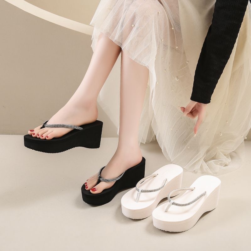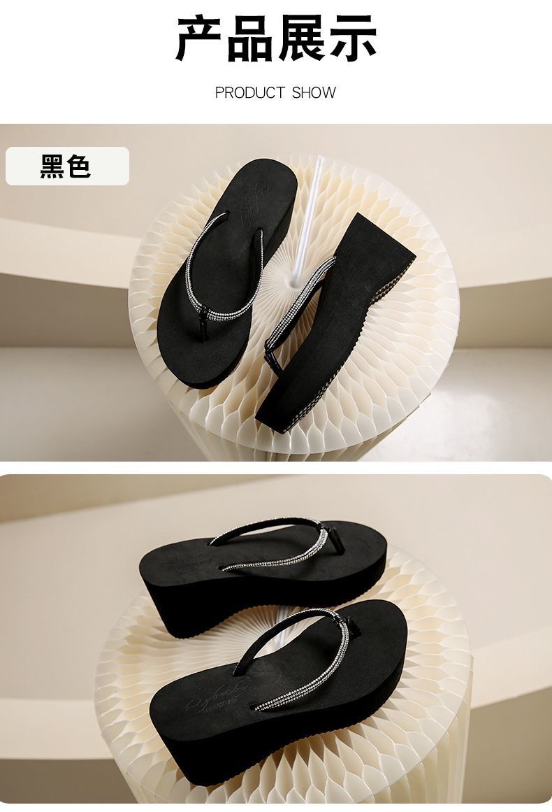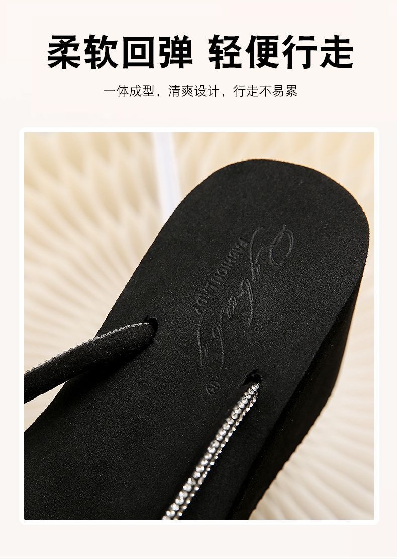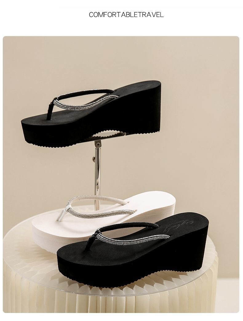 8CM 크리스탈 웨지힐 플랫폼 샌들 여성용, 두꺼운 밑창, 고급스러운 느낌, 해변 여행용 슬리퍼스토어 가기