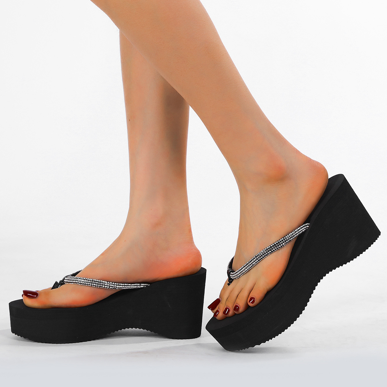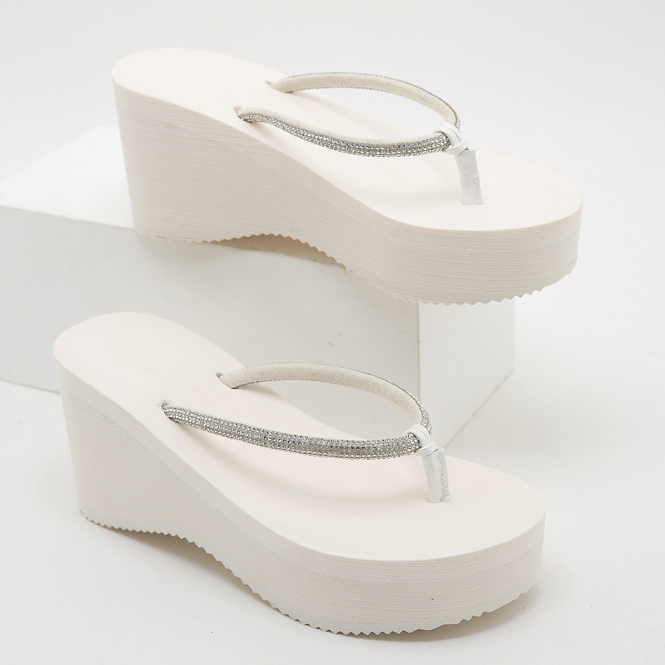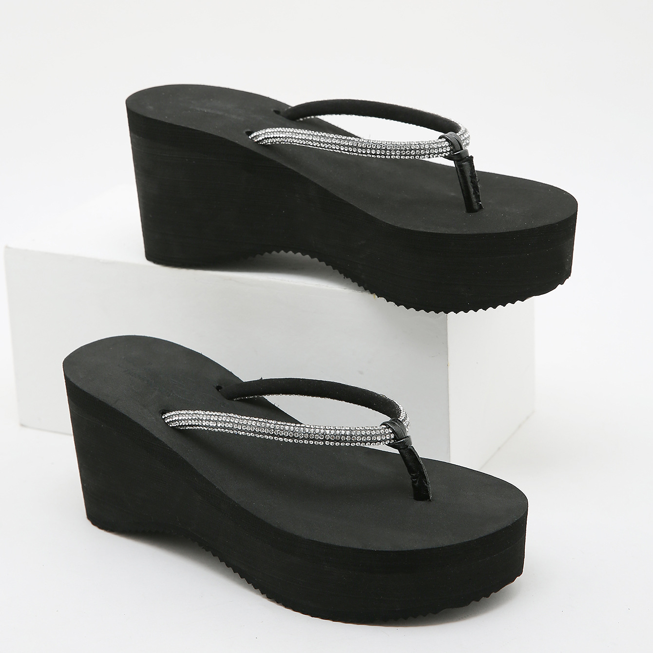 8CM 크리스탈 웨지힐 플랫폼 샌들 여성용, 두꺼운 밑창, 고급스러운 느낌, 해변 여행용 슬리퍼스토어 가기