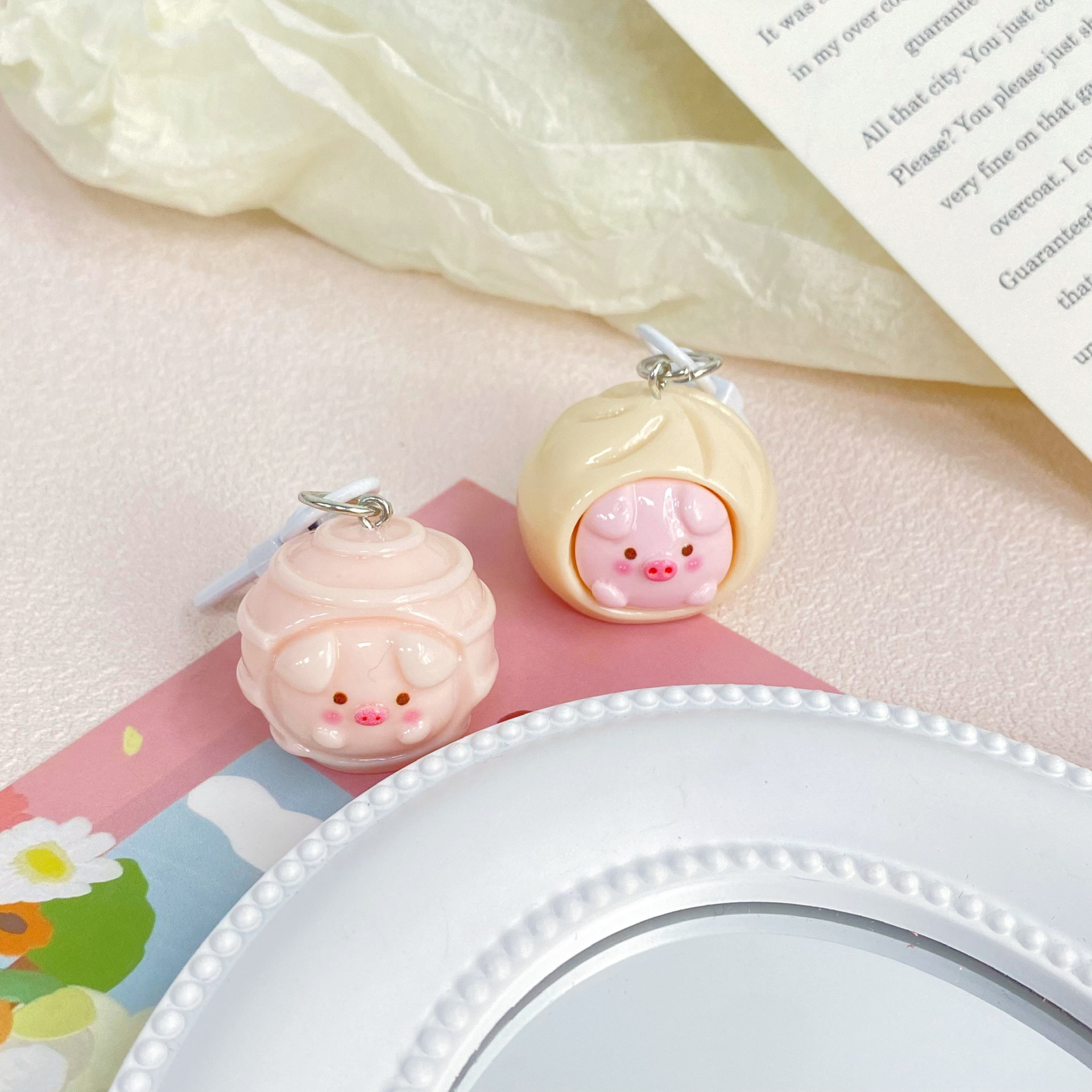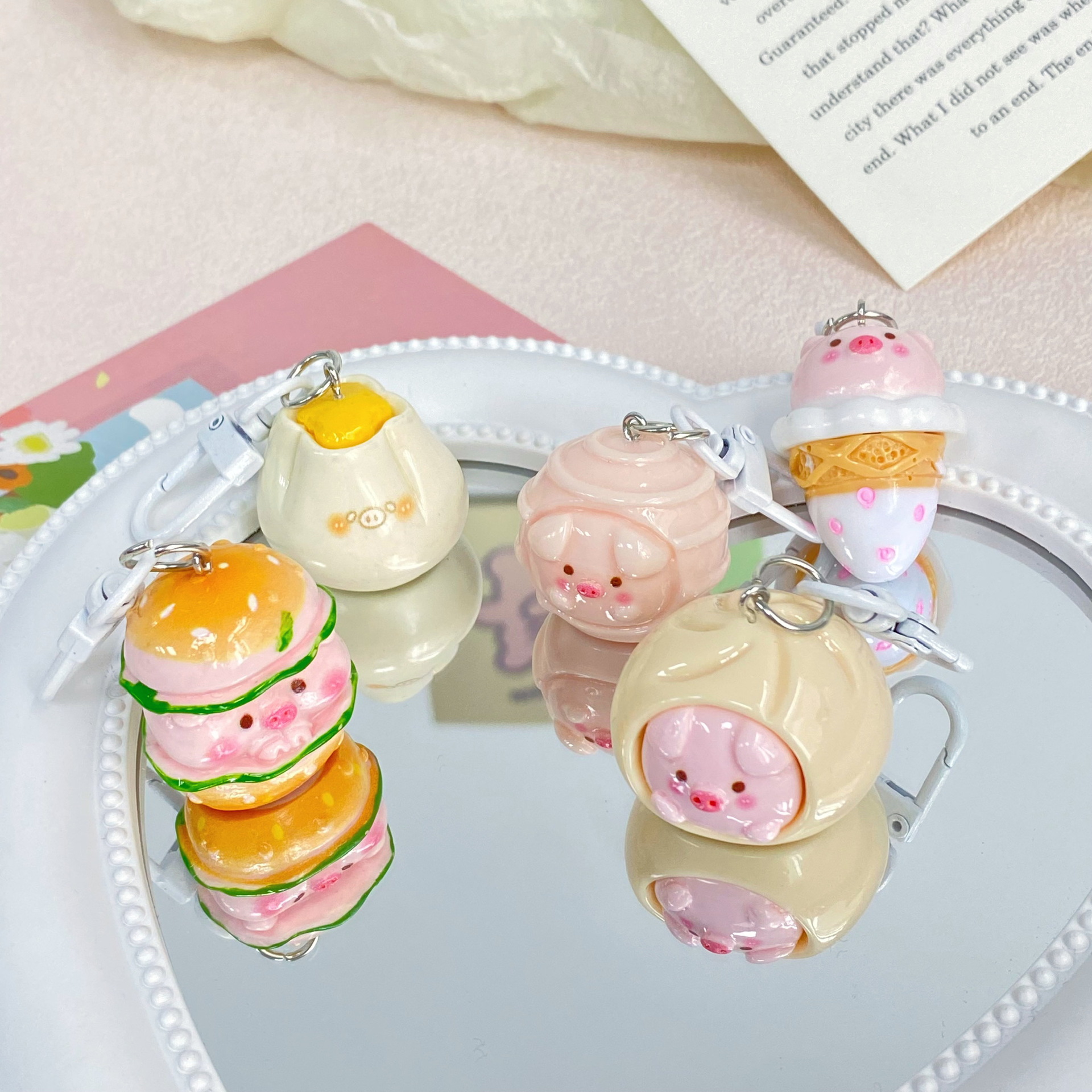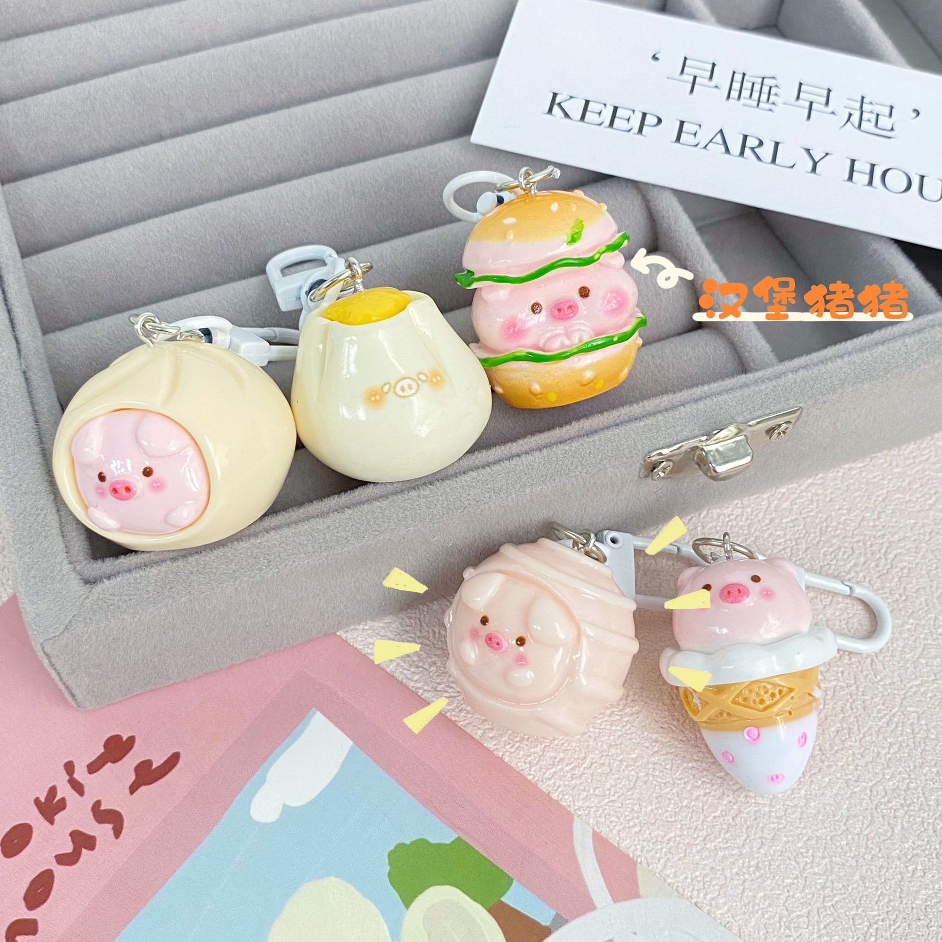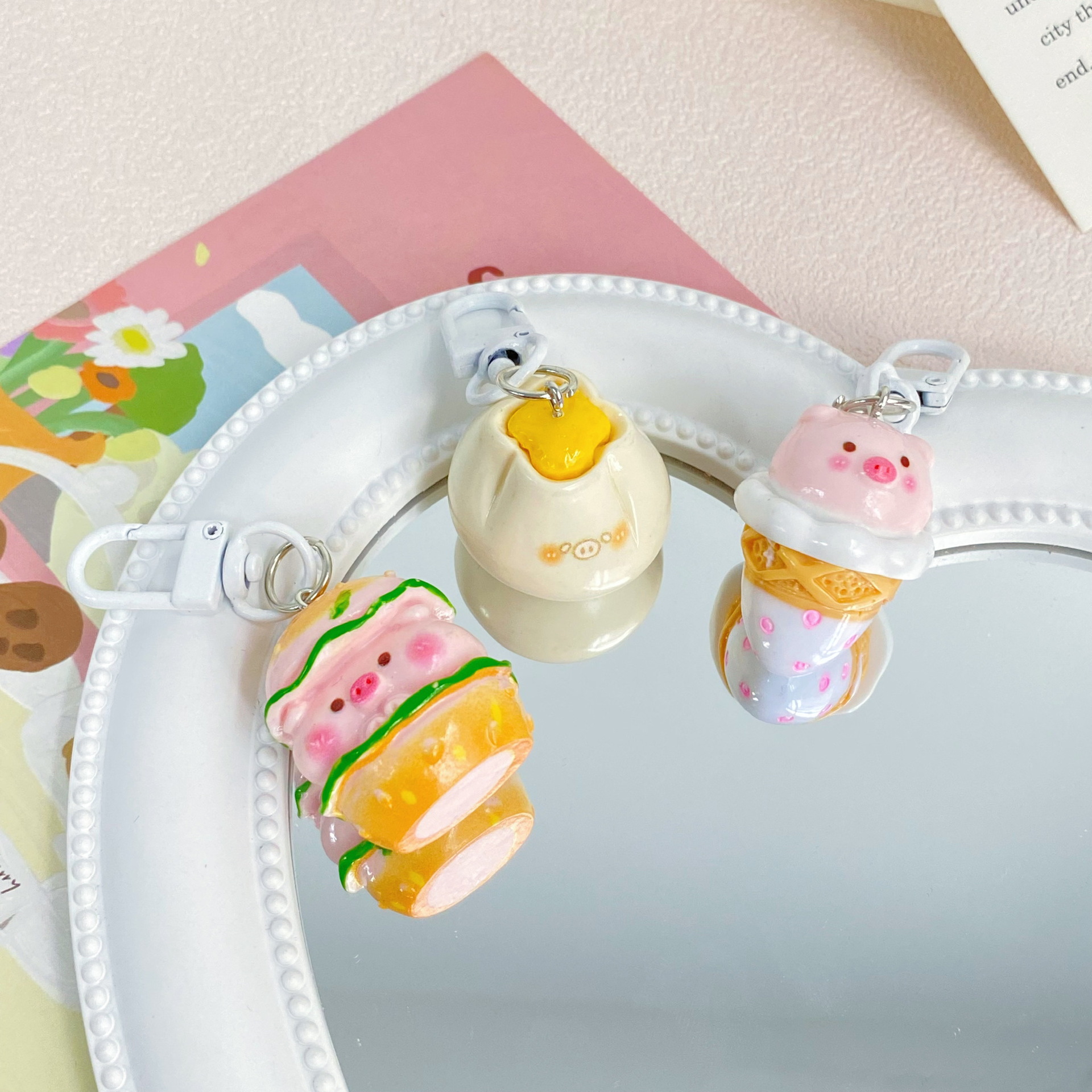 귀여운 돼지 간식 가게 키 체인 귀여운 만화 듀오 자매 커플 펜던트 학생 가방 간단한 교수형 선물