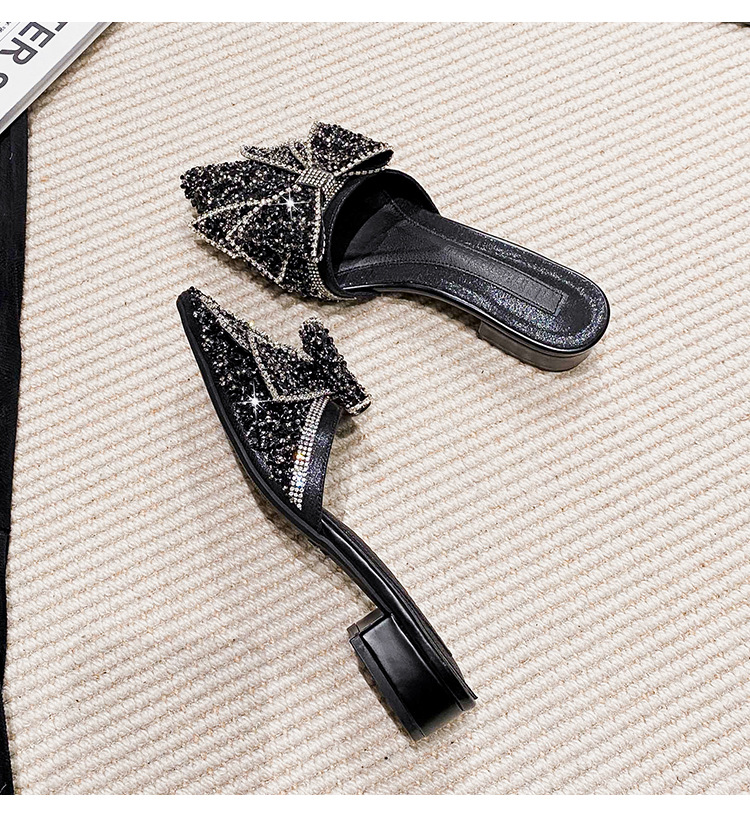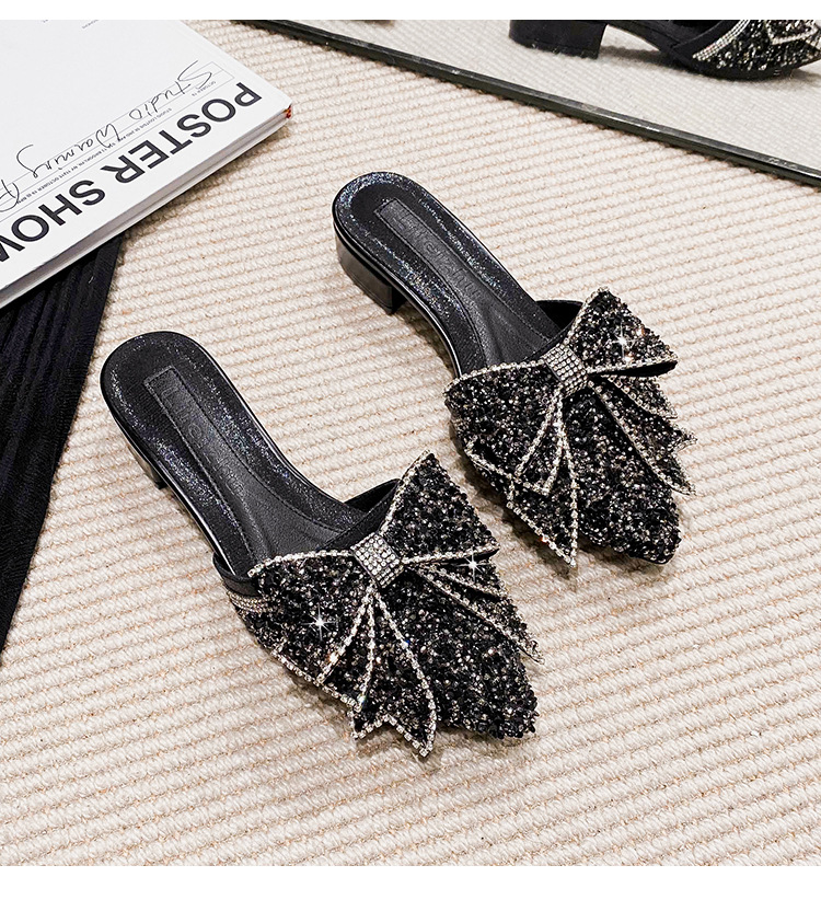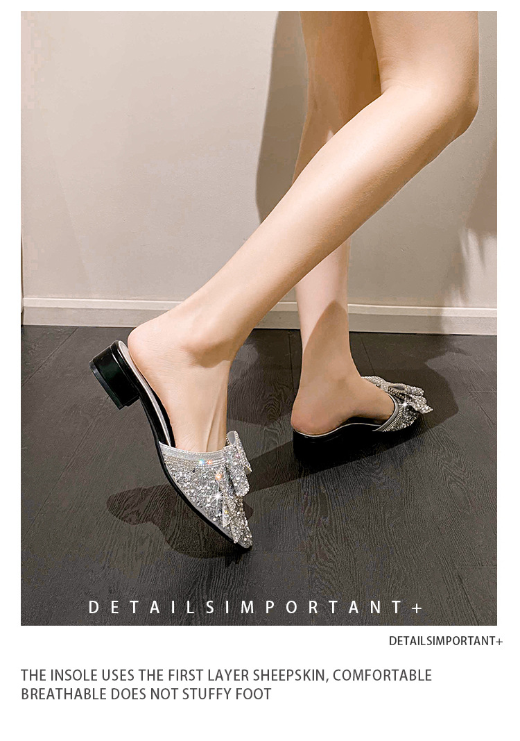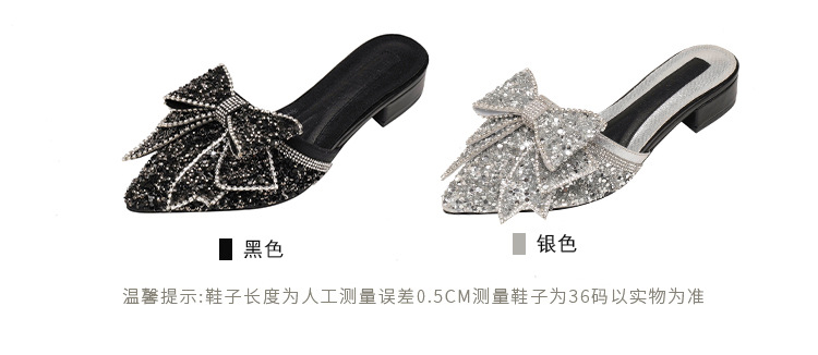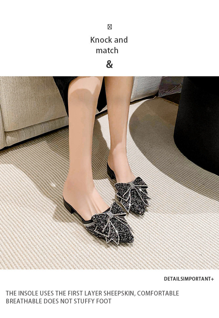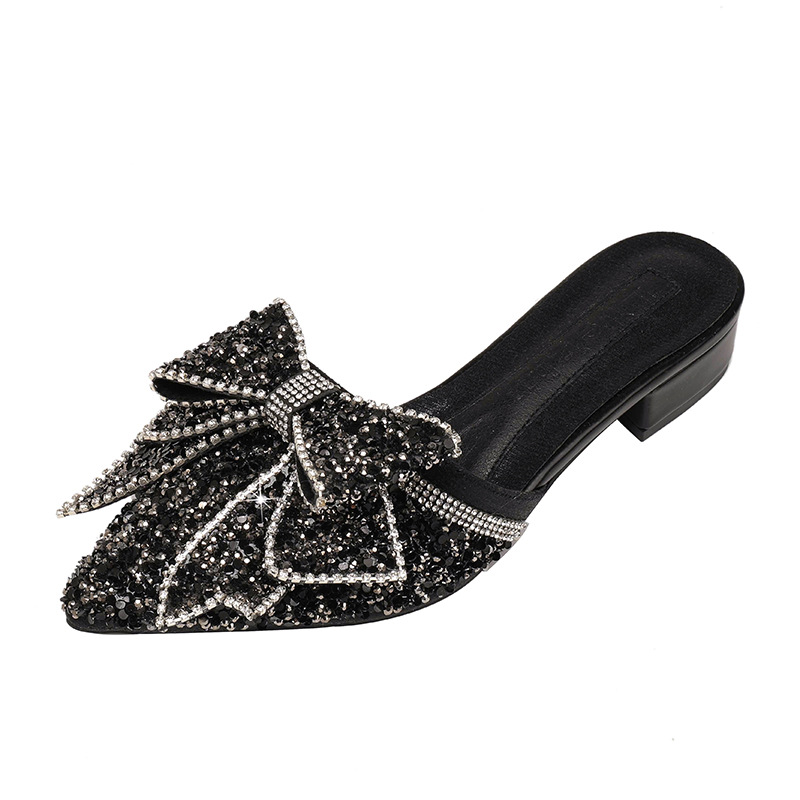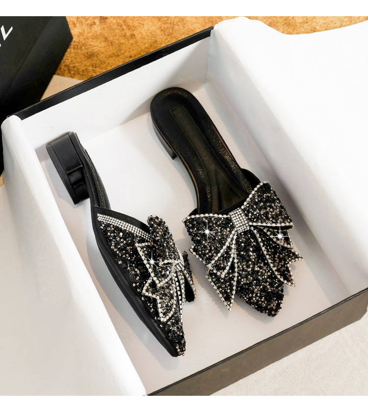 프랑스 최고급 슬리퍼 여성용 여름 사이즈 41-43 발 뒤꿈치없는 반 견인 활 매듭 페달 두꺼운 뒤꿈치 발가락으로 덮인 견인