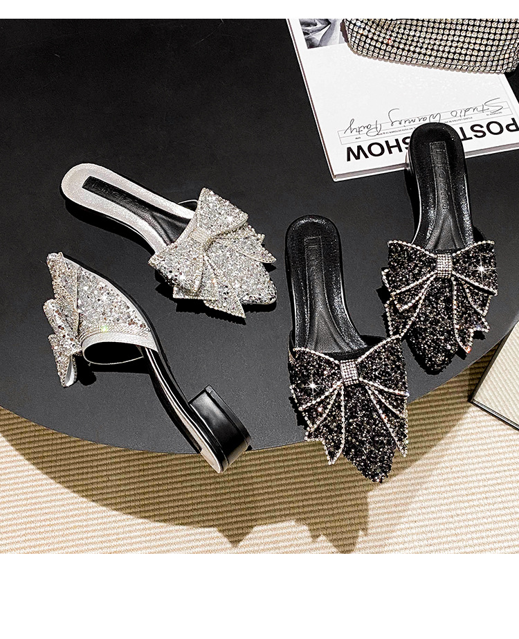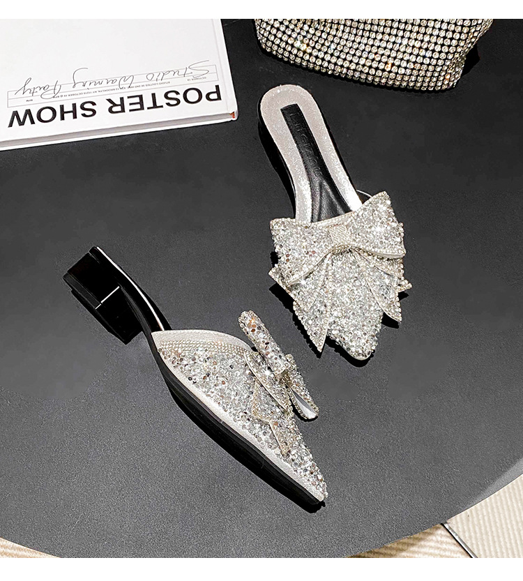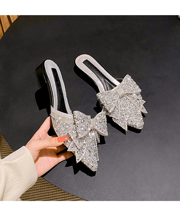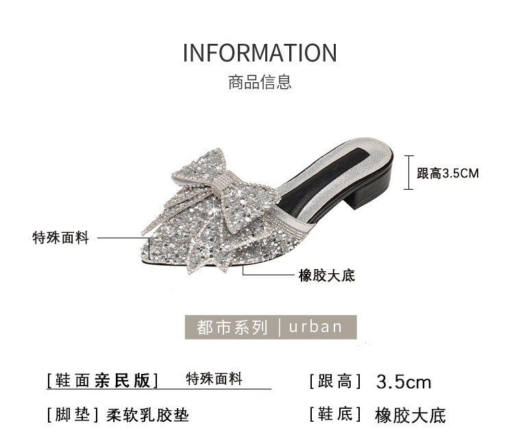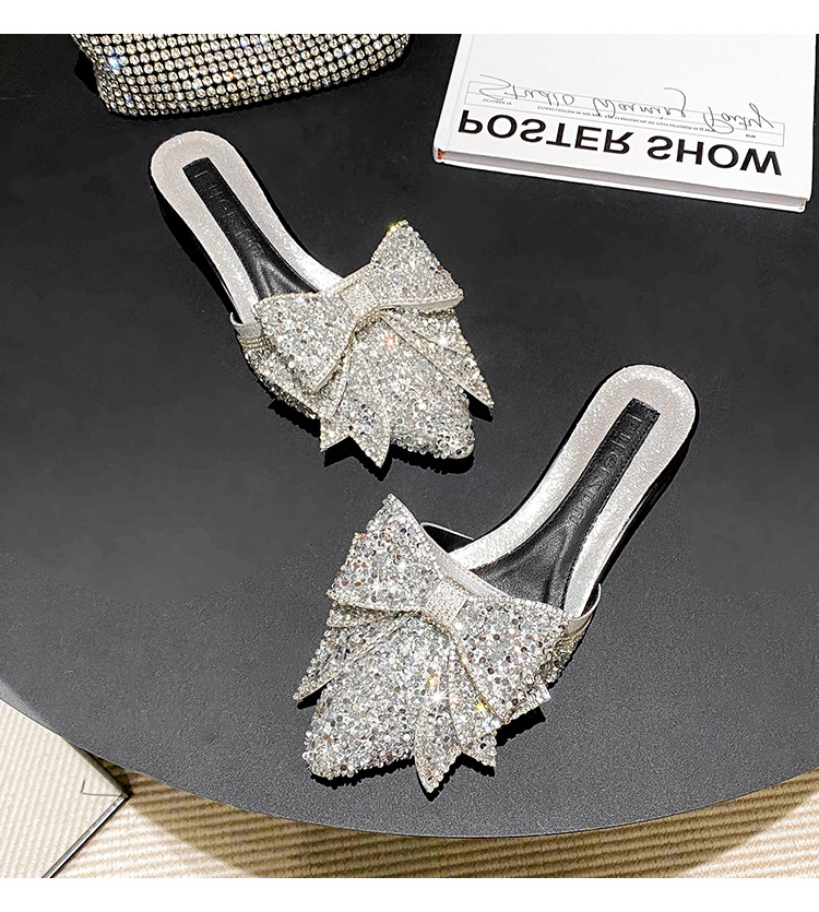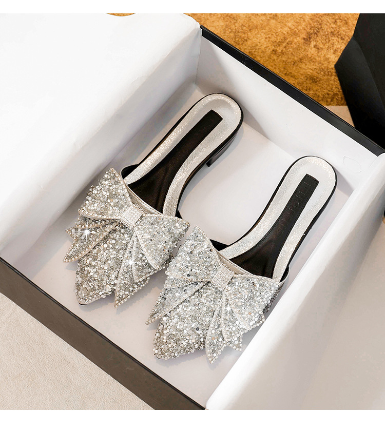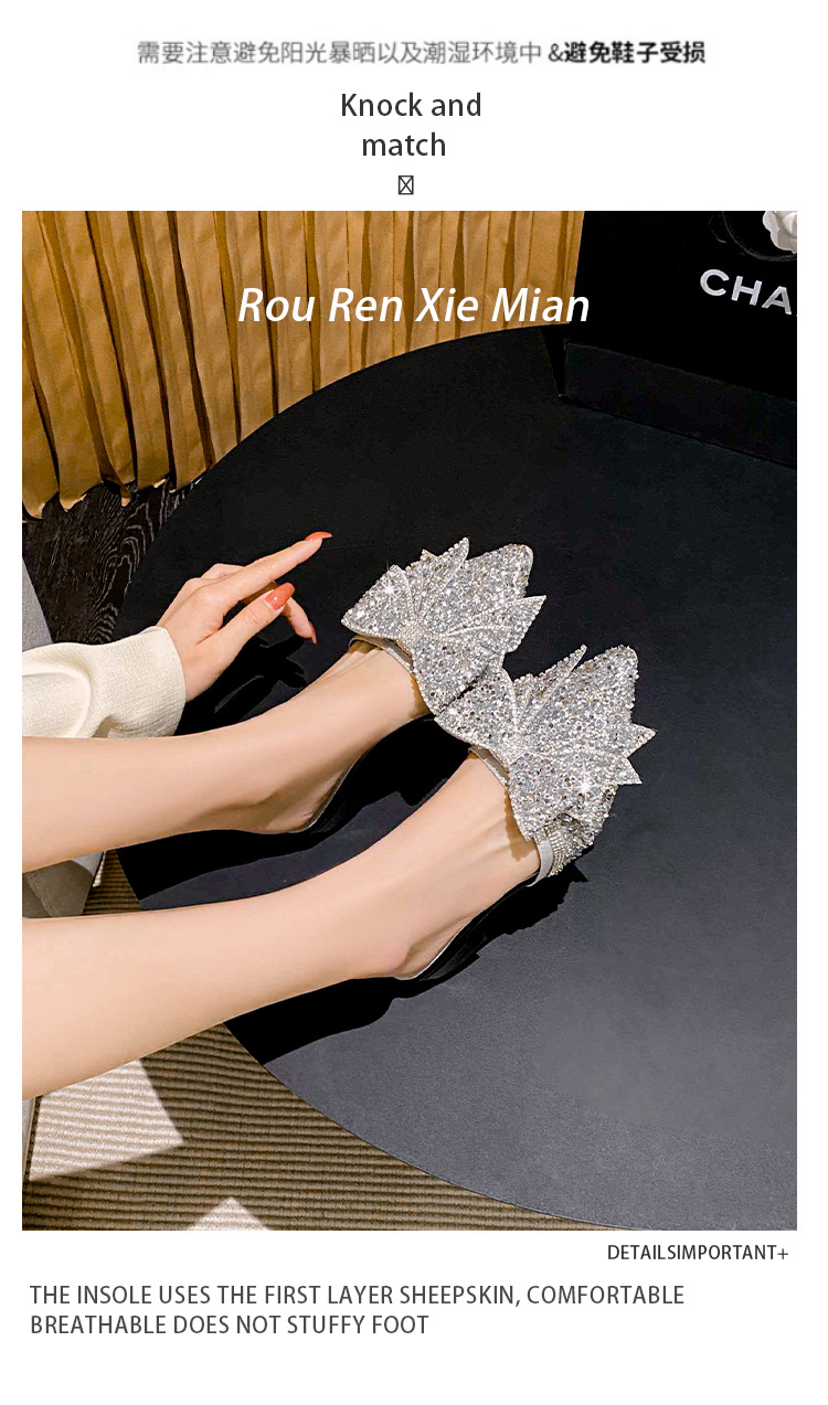 프랑스 최고급 슬리퍼 여성용 여름 사이즈 41-43 발 뒤꿈치없는 반 견인 활 매듭 페달 두꺼운 뒤꿈치 발가락으로 덮인 견인