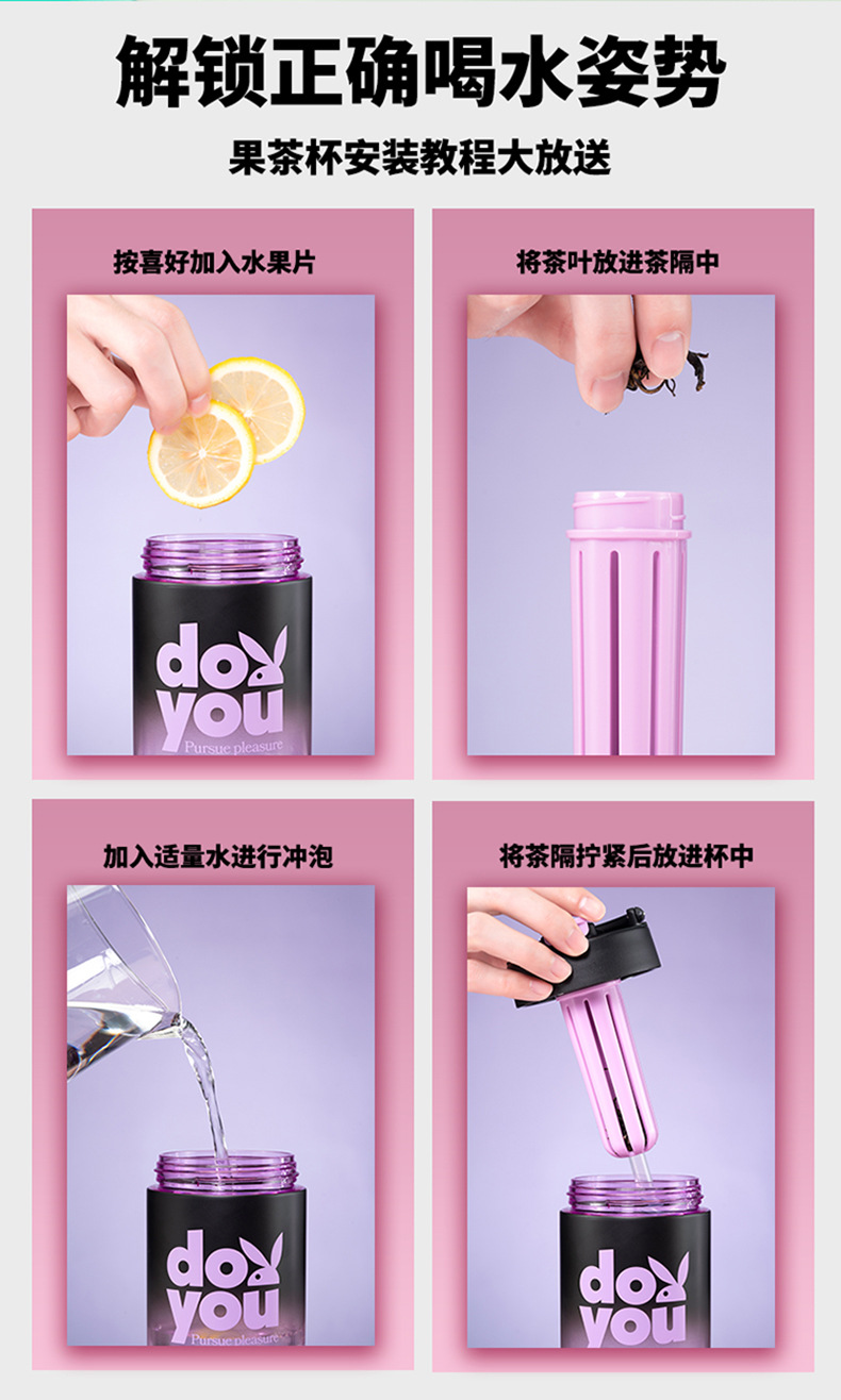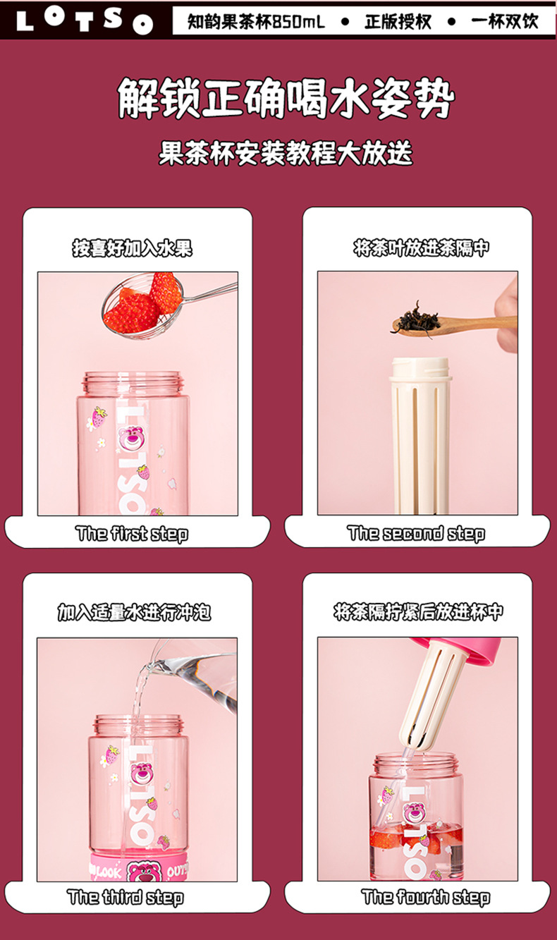딸기 곰 피카츄 플레이 보이 정품 IP Zhiyun 과일 차 식품 등급 트리탄 플라스틱 대용량 물 컵스토어 가기