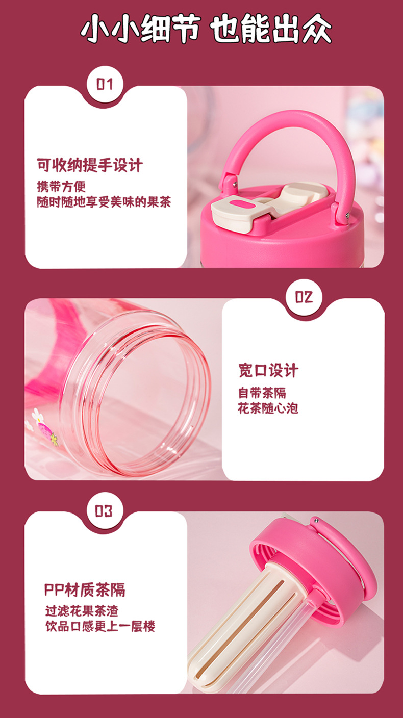 딸기 곰 피카츄 플레이 보이 정품 IP Zhiyun 과일 차 식품 등급 트리탄 플라스틱 대용량 물 컵