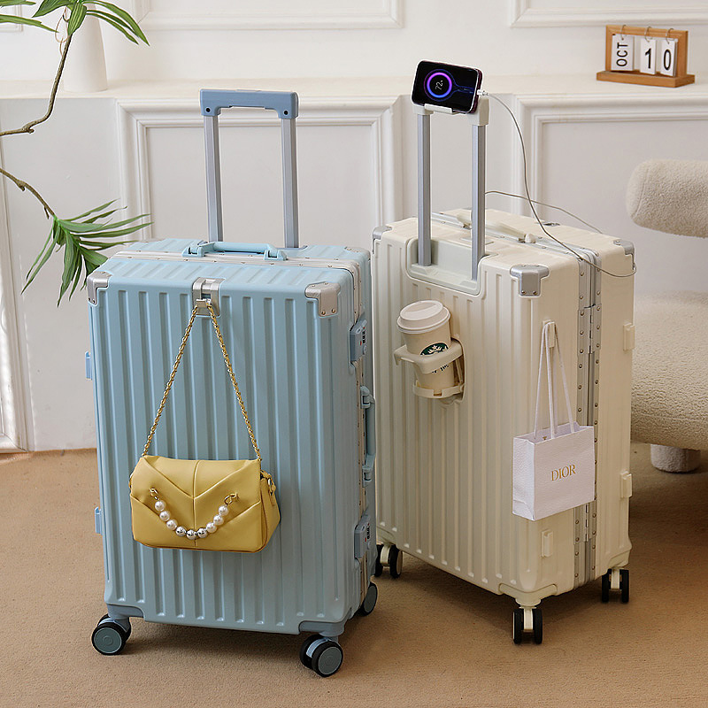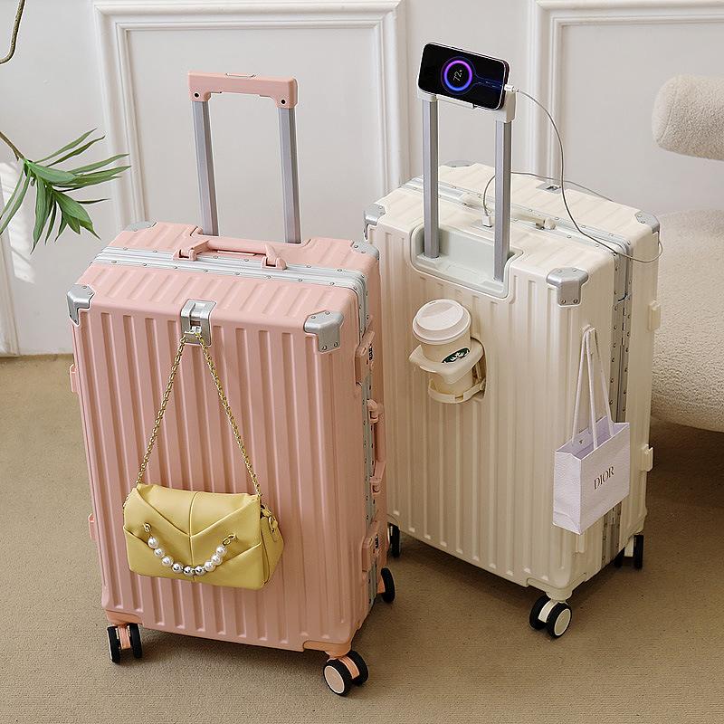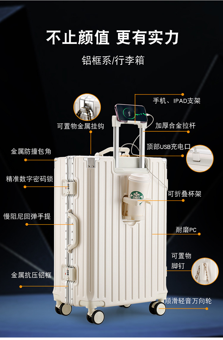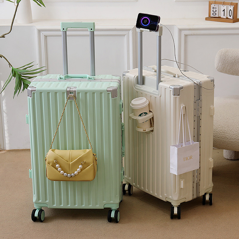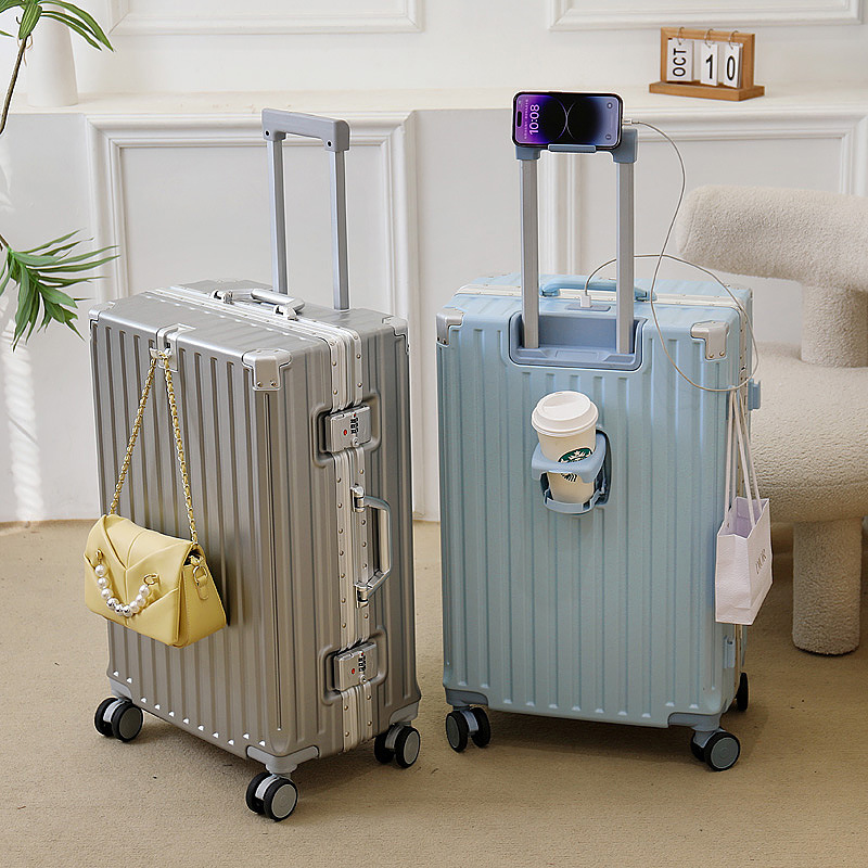 20inch 다기능 여행가방, 패셔너블하고 멋진 디자인, 컵홀더가 있는 24inch 여행가방, 대용량 알루미늄 프레임 트롤리 케이스스토어 가기