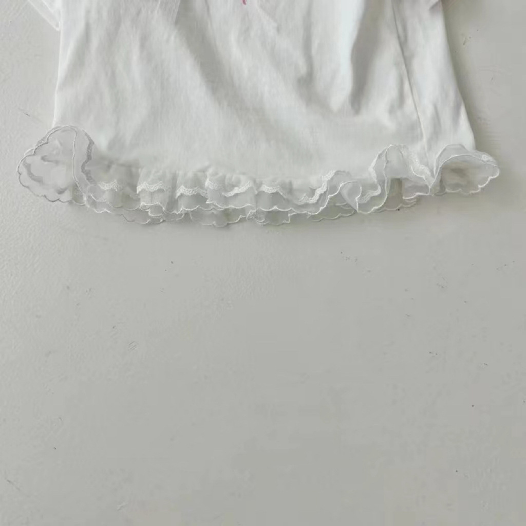 한국 스타일 인 활 리본 라운드 넥 반팔 여성 탑 티셔츠 레이스 엣지 디자인 유럽 올 매치 웨스턴 스타일 여름 스타일