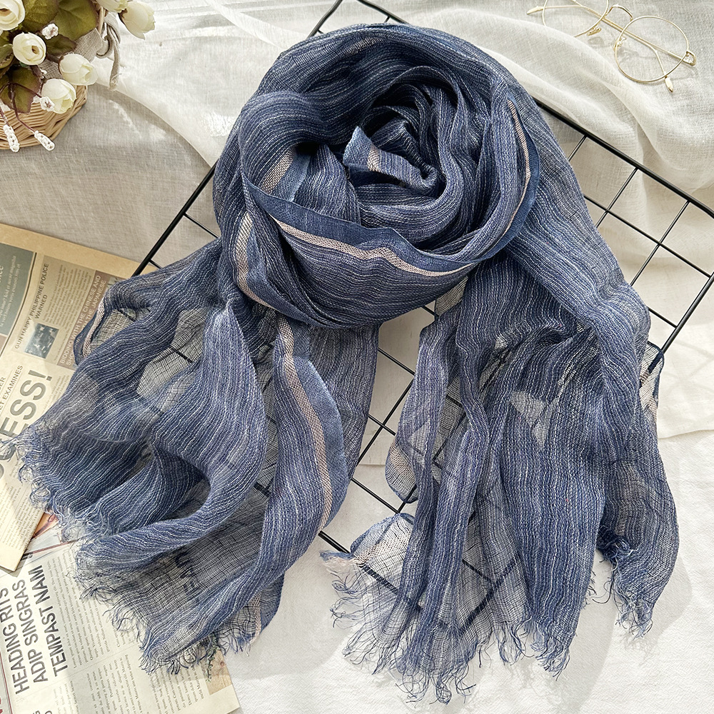 국경 줄무늬 린넨 스카프 여성의 여름 문학 차양 원사 염색 공예 200*70cm 거즈 타월 머리카락스토어 가기
