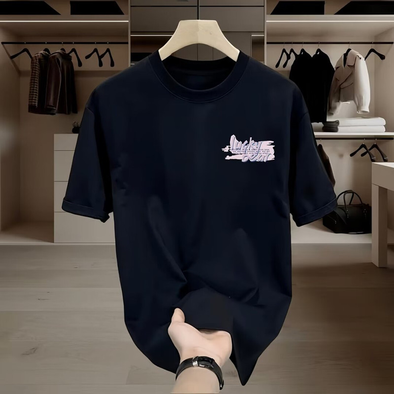 헤비 트렌디 브랜드 코튼 프린트 남성용 반팔 티셔츠 2024 새로운 여름 폭발 유행 캐주얼 크루 넥 티셔츠스토어 가기