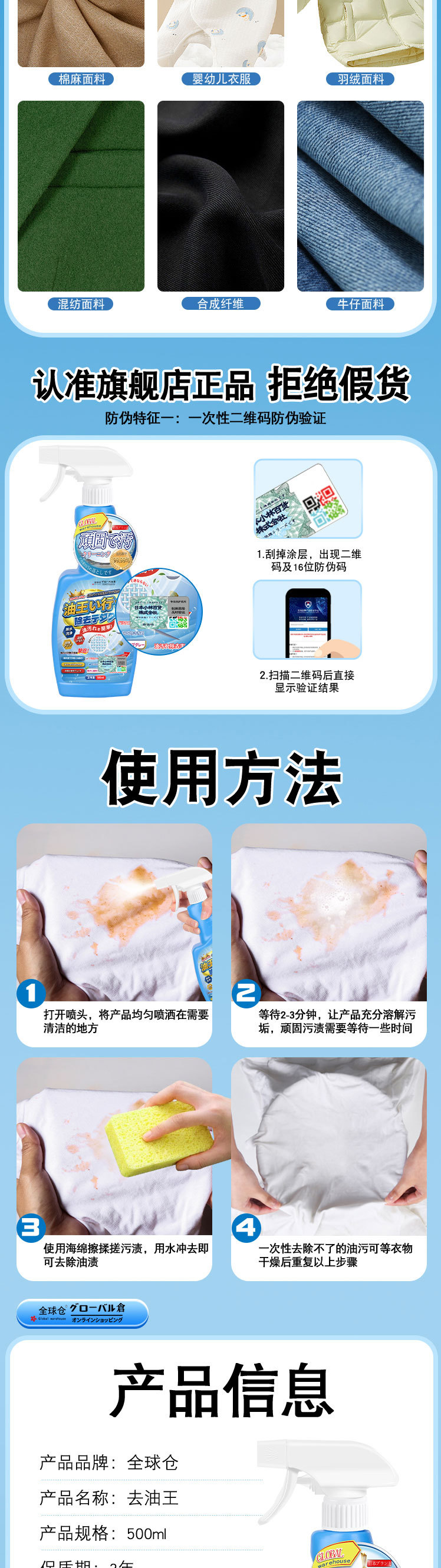 글로벌 창고 옷 디그리스 스프레이 강력한 목적지 오일 얼룩 노란색 침투 스프레이 클렌저스토어 가기