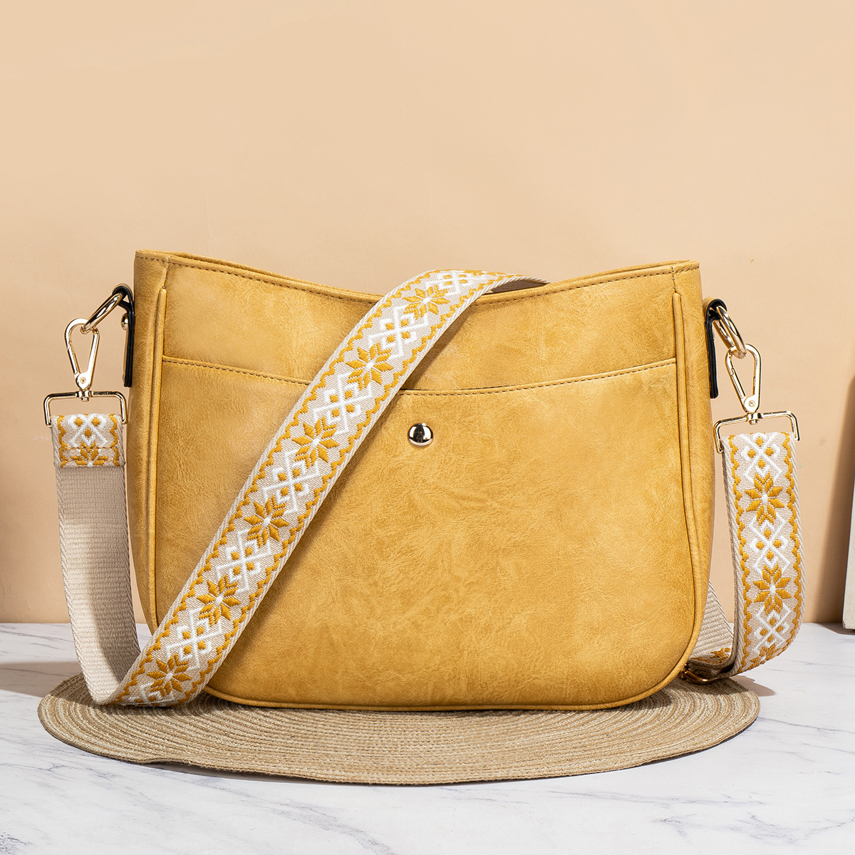 국경 간 여성 가방 2025 새로운 여성 PU 가죽 새로운 텍스트 크로스 바디 어깨 가방 간단한 패션 여성 사첼