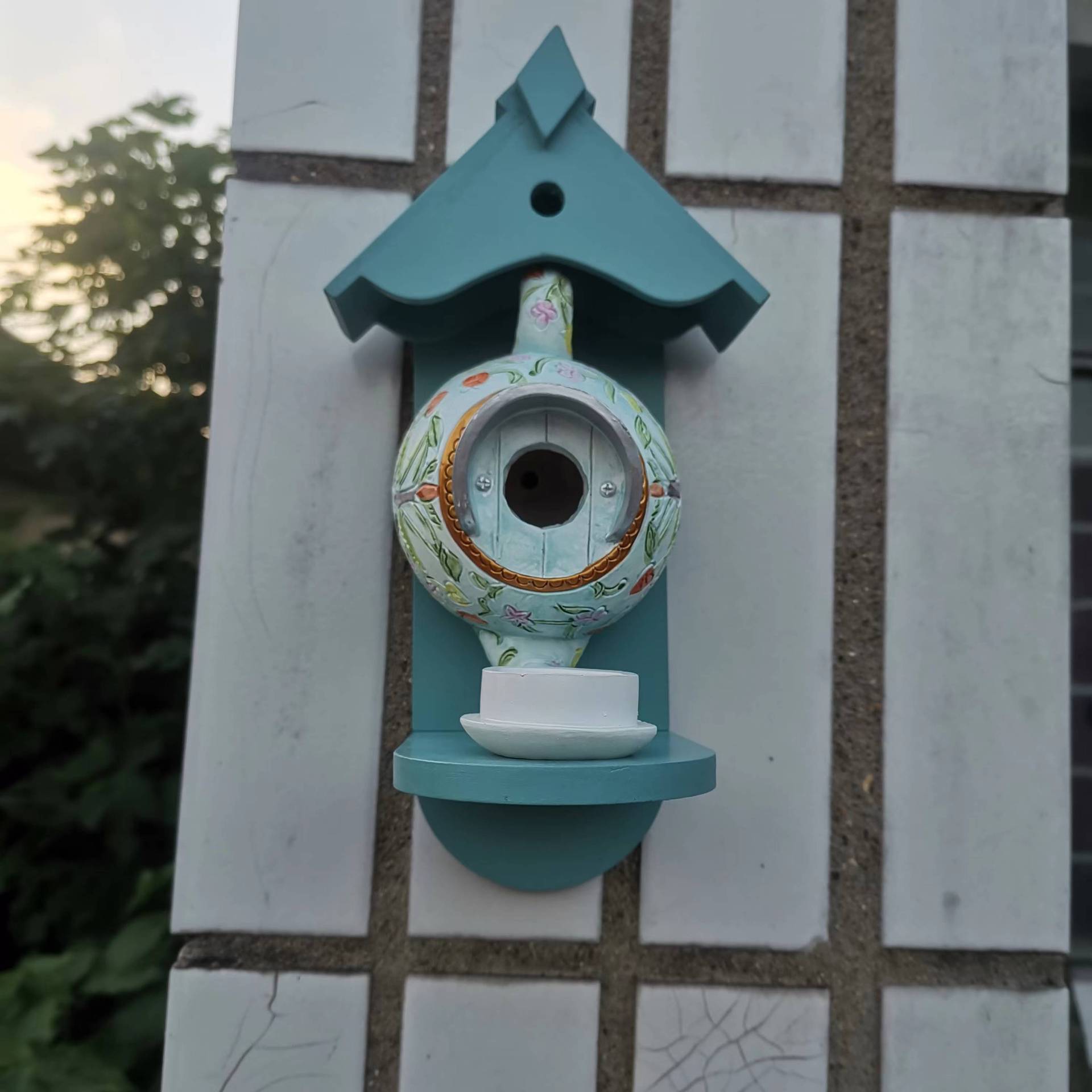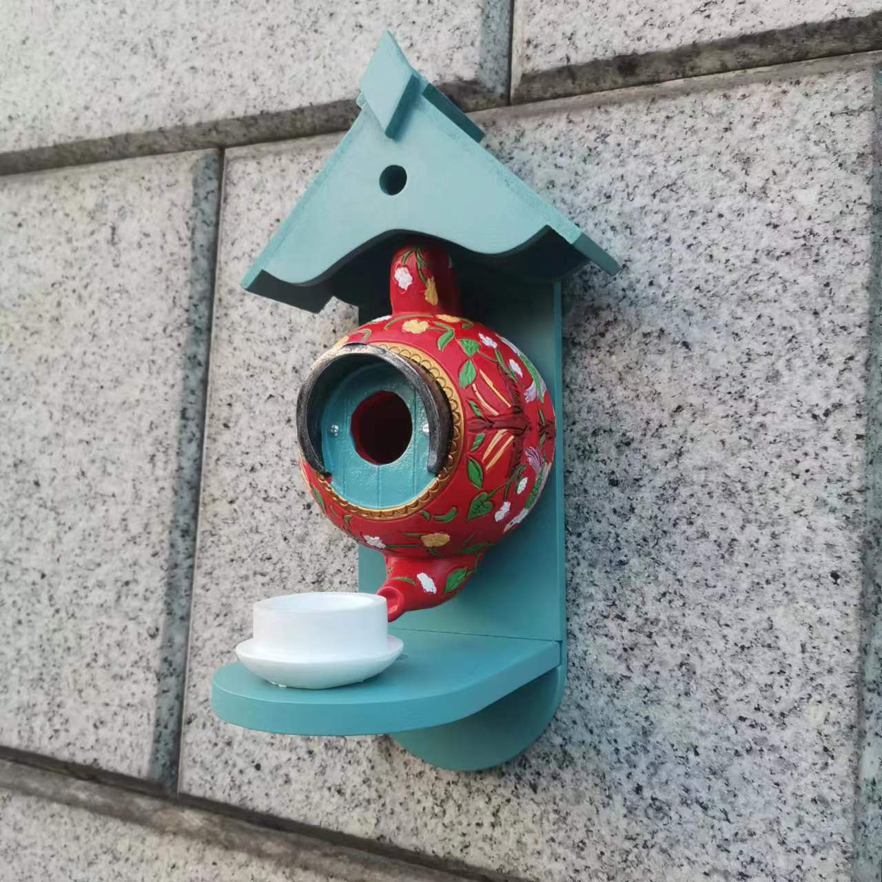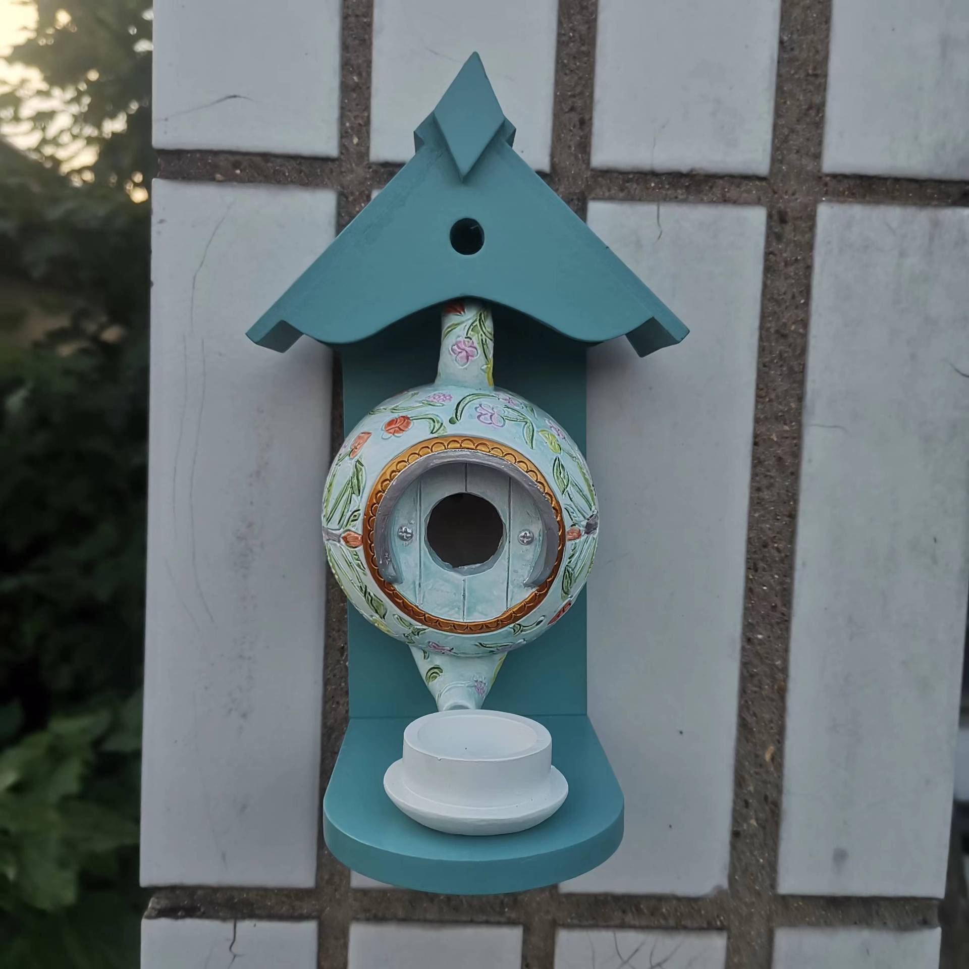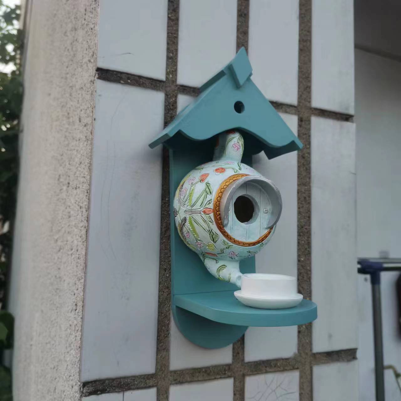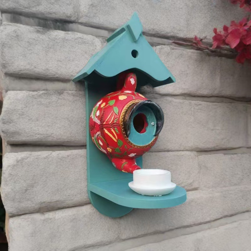 버드 하우스와 피더 윌리엄 모리스 블루 주전자 버드 하우스 및 피더 파티오 장식